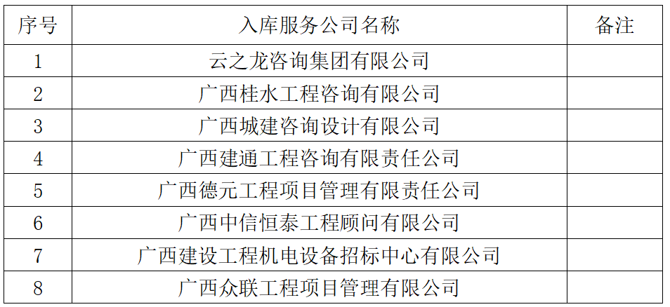 四、評審結(jié)果: 經(jīng)評審小組評審,2025-2027年度招標(biāo)代理機(jī)構(gòu)入庫服務(wù)遴選8家成交結(jié)果公告如下: