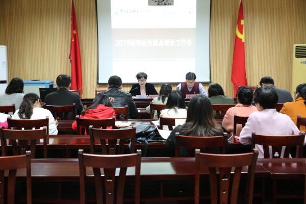 會上,黨委書記沈立君傳達了自治區教育廳就業創業工作會議精神,分享了今年全區高校就業創業情況,對我院2018屆畢業生就業創業工作進行了總結和分析,并對2019屆畢業生就業創業工作進行了詳細部署。她強調,要認清形勢,高度重視畢業生就業創業工作,把就業創業工作作為“最大的民生”工程來抓;要結合學院特點,優化服務體系,加強就業指導,積極搭建多種形式的“雙選”平臺;要優化就業創業日常管理機制,維護好畢業生的正當權益,做到早預防、早發現、早處理;要完善就業數據統計監管機制,杜絕虛假就業數據統計信息;要落實“一對一”幫扶機制和“四個一”的幫扶措施,確保有就業意愿且愿意接受幫扶的建檔立卡畢業生實現100%就業。