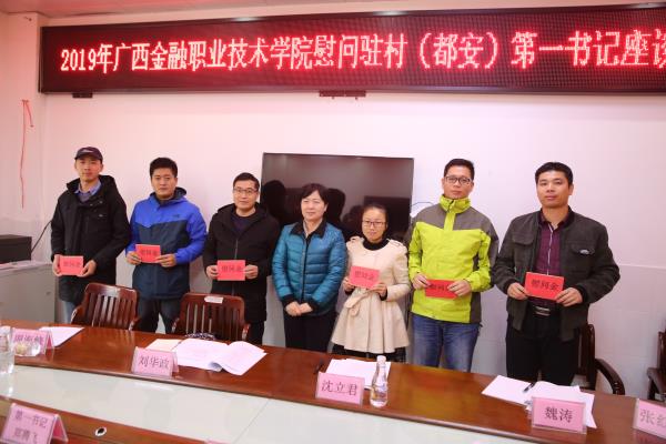 2019年1月25日,學院黨委書記沈立君帶隊到都安縣菁盛鄉慰問我院派出的6位第一書記,通過召開座談會和深入實地調研的方式進一步了解第一書記工作、生活等情況。菁盛鄉鄉長楊研等領導參加座談會。會議由學院黨委副書記、紀委書記劉華政主持。