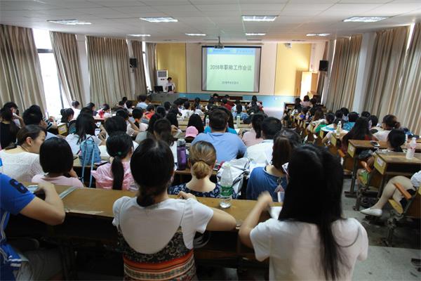 為推進我院(校)職稱工作,8月25日下午,我院(校)在東校區電教一樓多媒體教室召開2018年職稱工作會議。學院(校)黨委書記沈立君、院長莫海燕、黨委副書記劉華政以及全體教師參加了會議。
