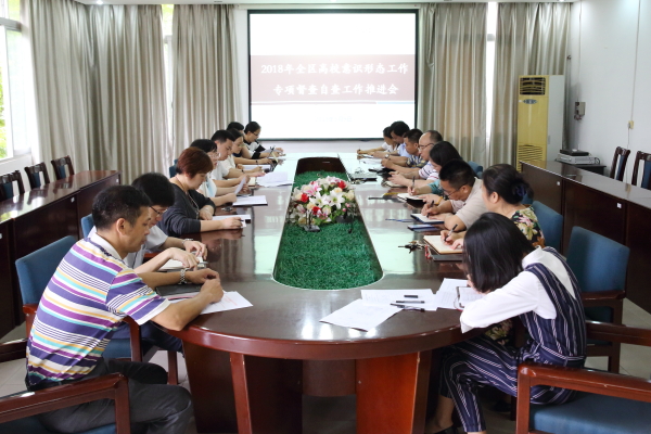 沈立君書記首先傳達了自治區高校工委《關于開展2018年全區高校意識形態工作專項督查的通知》(桂黨高工辦〔2018〕54 號)精神,要求各單位認真落實意識形態工作各項重點任務,做好意識形態工作隱患排查工作。黨政辦公室副主任韓蓓麗部署我院迎接2018年全區高校意識形態工作專項督查自查工作任務。組織人事處副處長魏濤將任務逐項細化,落實到相關部門。