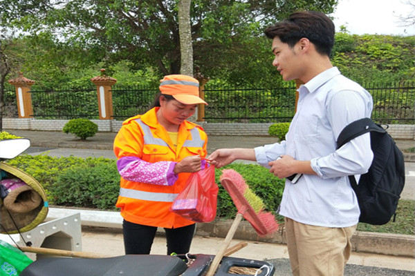 3月19日,旅游系團總支組織學生將西校區倒地的共享單車扶起,并統一擺放整齊,既維護了校園環境,又方便同學們使用車輛。同時,該系還組織學生開展為環衛工人獻愛心活動,營造關愛環衛工人、保護環境的良好社會氛圍。