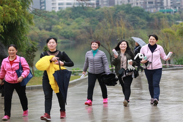 三月春雨綿綿,但女職工們熱情高漲,伴著朦朦細雨,夾著縷縷春風,沿著湖畔,走過湖堤,行走在春色滿園的相思湖,一路上你追我趕,歡聲笑語,給相思湖增添了幾分活力與生機。通過健步走活動, 讓女職工強身健體,以良好的身體素質和飽滿的精神風貌投入到工作、學習和生活中去,更好地為學校發展貢獻自己的力量。