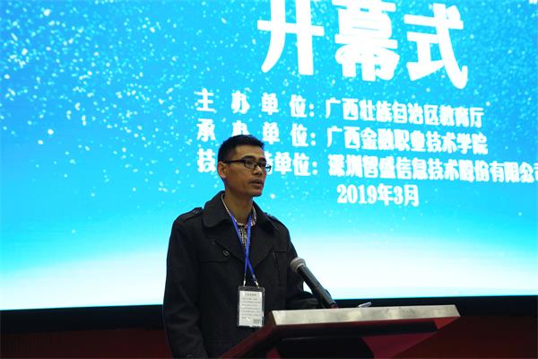 3月17日,2019年廣西職業院校技能大賽高職組《銀行業務綜合技能》賽項在我校西校區舉行。學校黨委書記沈立君、金融系主任王清星,大賽總裁判、廣西大學教授黃綏彪、深圳智盛信息技術股份有限公司代表徐大貴以及各參賽院校代表隊師生參加開幕式。大賽開幕式由我院副院長潘大勝主持。