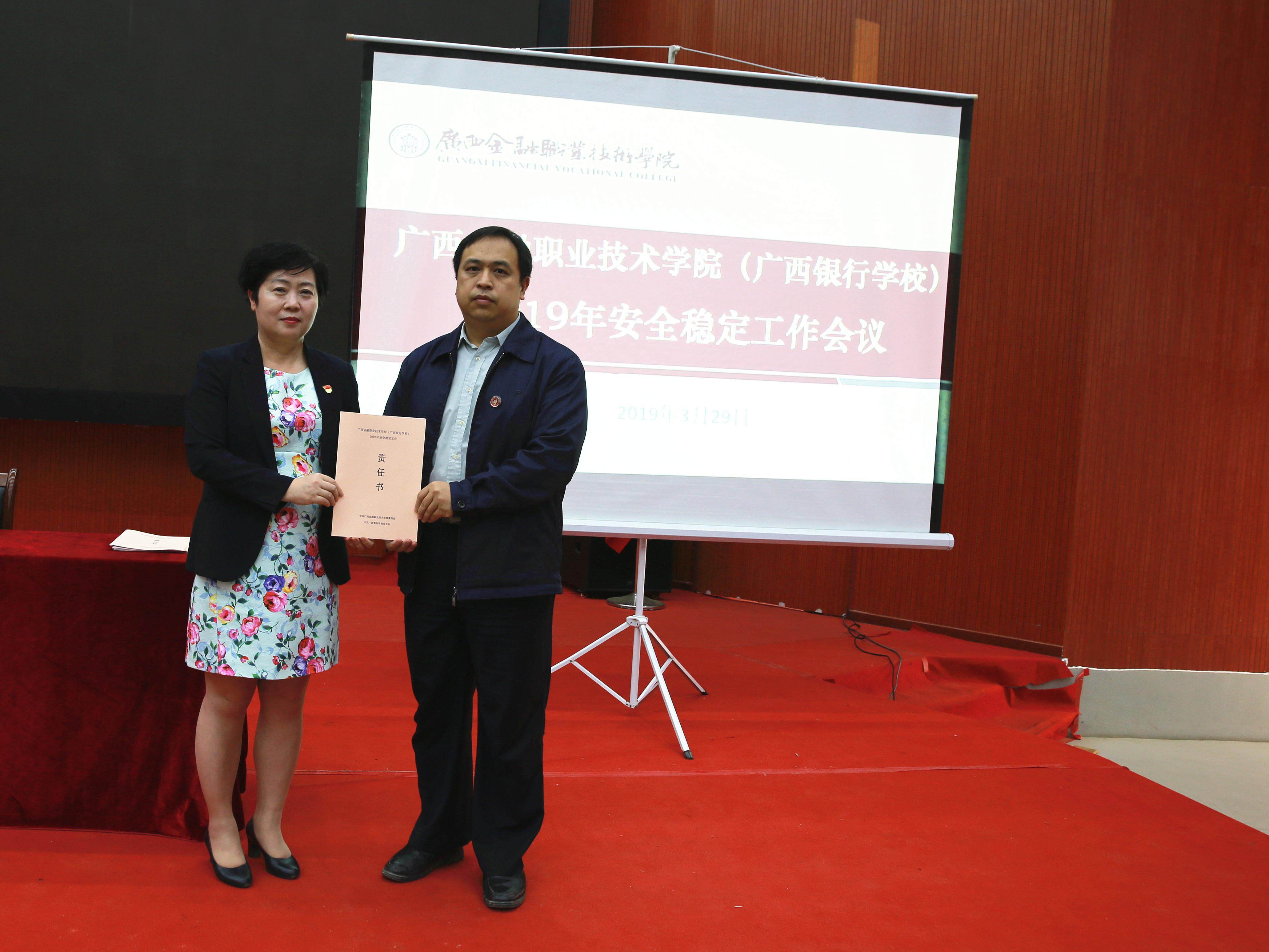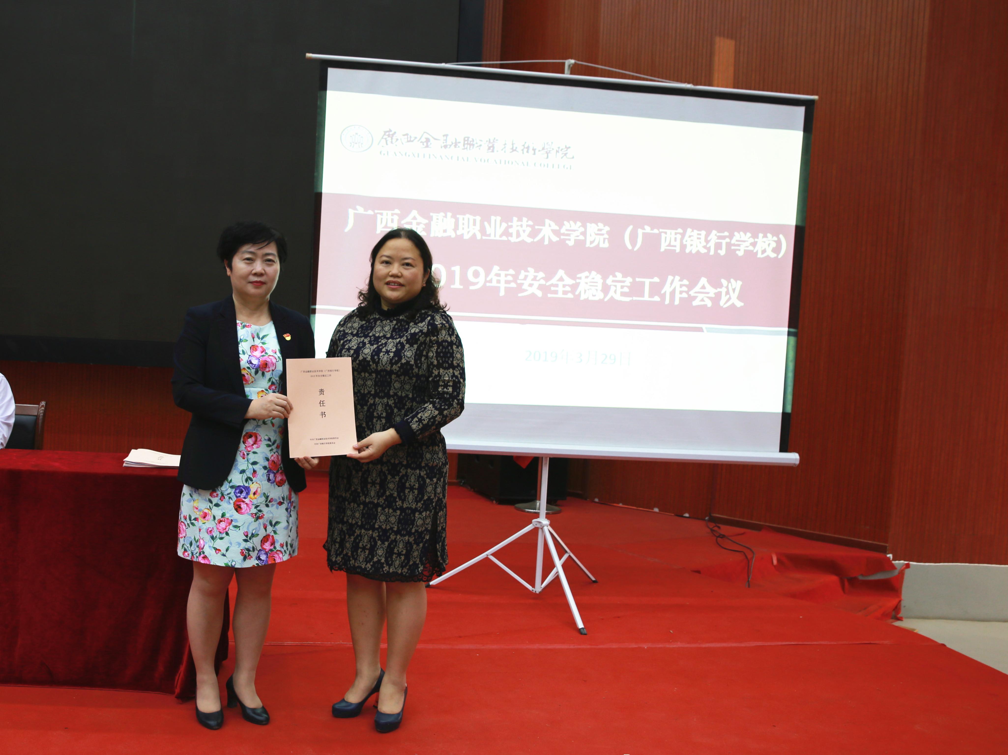會議伊始,由各部門負責人依次向學校黨委遞交《2019年安全穩定工作責任書》。隨后,后勤管理與保衛處、學生工作招生就業處、教務科研處負責人作為代表在會上進行了校園安全穩定工作經驗交流。