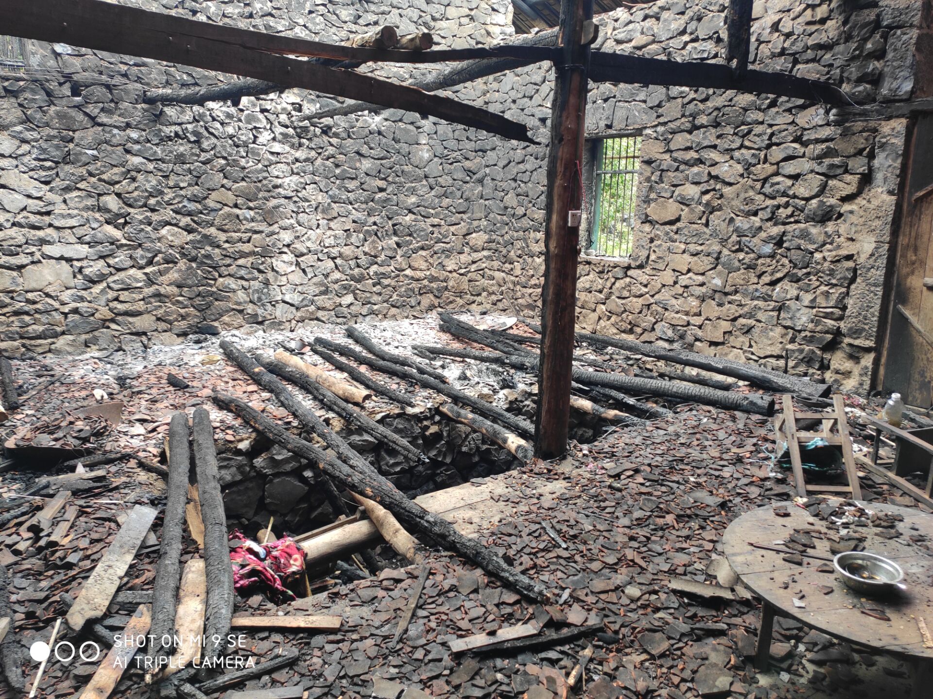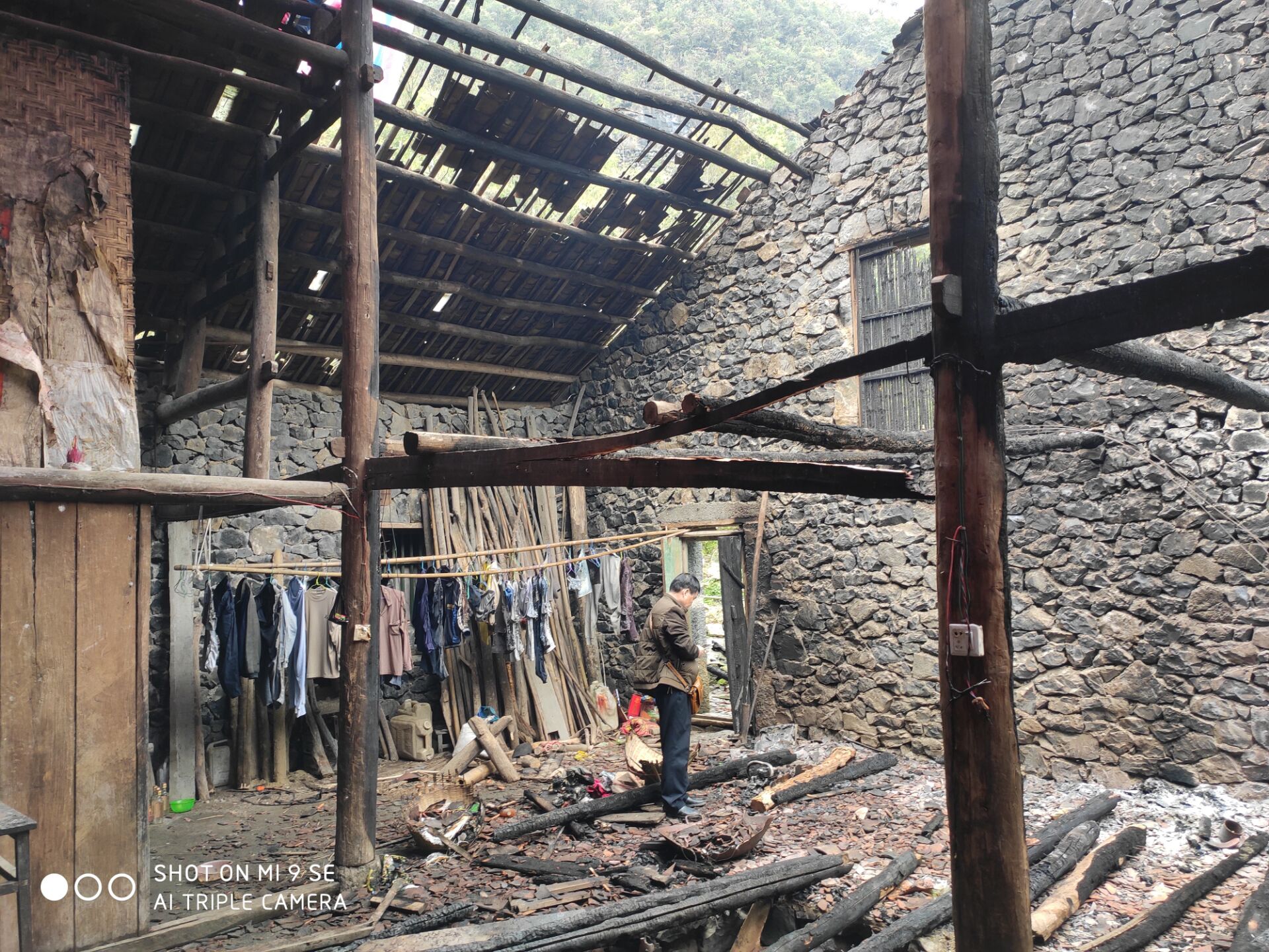 貧困戶所處的內曹村加傍隊地勢偏遠,交通和基礎設施落后,屬于深度貧困村。貧困戶藍呈耀、藍秀京一家兩戶6口人住在木互結構的老式住宅,藍呈耀夫婦年過七旬,體弱多病,基本沒有勞動能力和收入,且還需照顧年幼的孫子,生活十分困難。藍秀京是家中的老大,在家務農,沒有穩定工作和收入,其兒子在南寧上大學,家庭支出不小,經濟十分拮據。這次火災,對他們造成了很大的打擊。