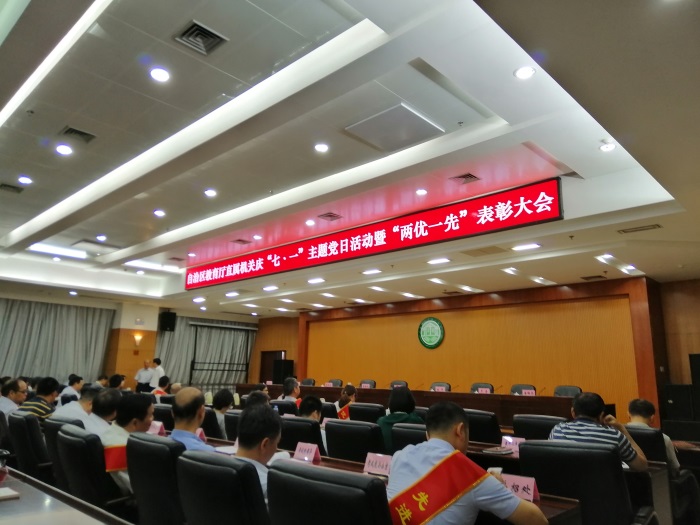 7月1日,為慶祝中國共產黨成立98周年,自治區教育廳直屬機關委員會開展迎“七·一”主題黨日活動暨“兩優一先”表彰大會。評選表彰2017-2018年來教育廳直屬機關委員會戰線涌現的50名優秀共產黨員,20名優秀黨務工作者和18個基層先進黨組織。我校黨委書記沈立君、黨委副書記劉華政以及“兩優一先”獲獎單位(個人)參加會議。