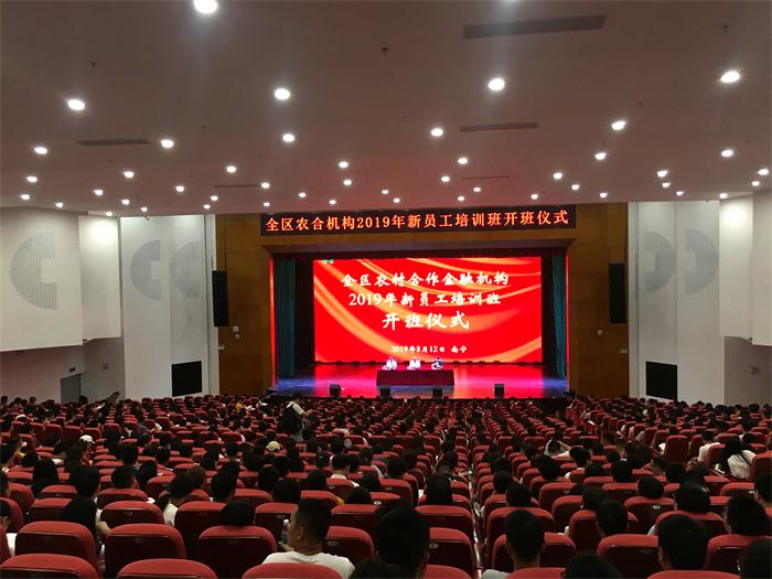 8月12日上午,由我校承辦的全區農合機構2019年新員工入職培訓開班儀式在我校西校區國際會議中心舉行。我校黨委書記沈立君、自治區農村信用聯社黨委副書記范樹育出席會議并講話,相關職能部門負責人、培訓班教官、班主任以及參加培訓的950余名學員參加本次開班儀式。開班儀式由自治區農村信用聯社人力資源部副總經理鐘景聰主持。
