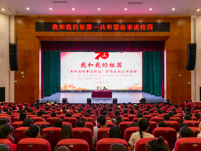 為慶祝中華人民共和國成立70周年,講好中國故事、講好中國共產黨故事,進一步激發青年學生的愛國之情、強化愛國之志,根據自治區黨委宣傳部、自治區黨委黨史研究室、自治區黨委教育工委有關工作要求,9月17日下午,我校在西校區國際會議中心開展“我和我的祖國——共和國故事進校園”主題宣講活動,邀請自治區人民政府參事黃方方同志主講。全體教職員工、學生代表近 800人參加,活動由沈立君書記主持。