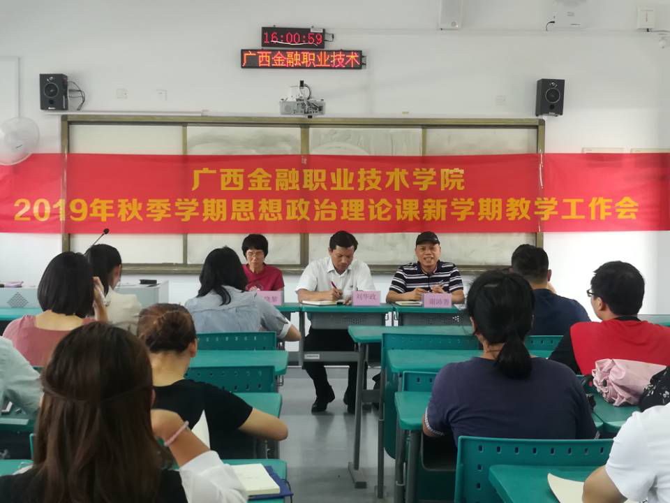 9月23日下午,我校社科部在第二教學樓A603教室召開2019年秋季學期思想政治理論課教學工作會。學院黨委副書記、紀委書記劉華政、副院長謝沛善出席會議,社科部全體教師、校內行政兼課教師、校外聘用任課教師參加會議。會議由社科部主任蘭曉黎主持。