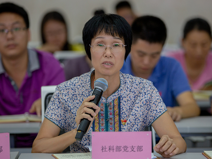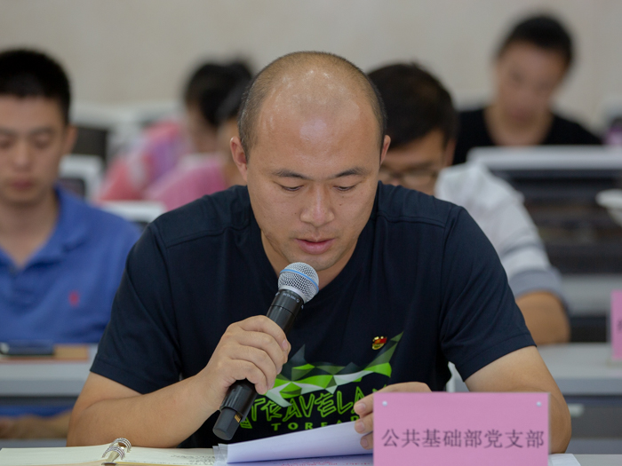 社科部黨支部書記蘭曉黎,公共基礎部黨支部書記鐘元博隨后作交流發言。