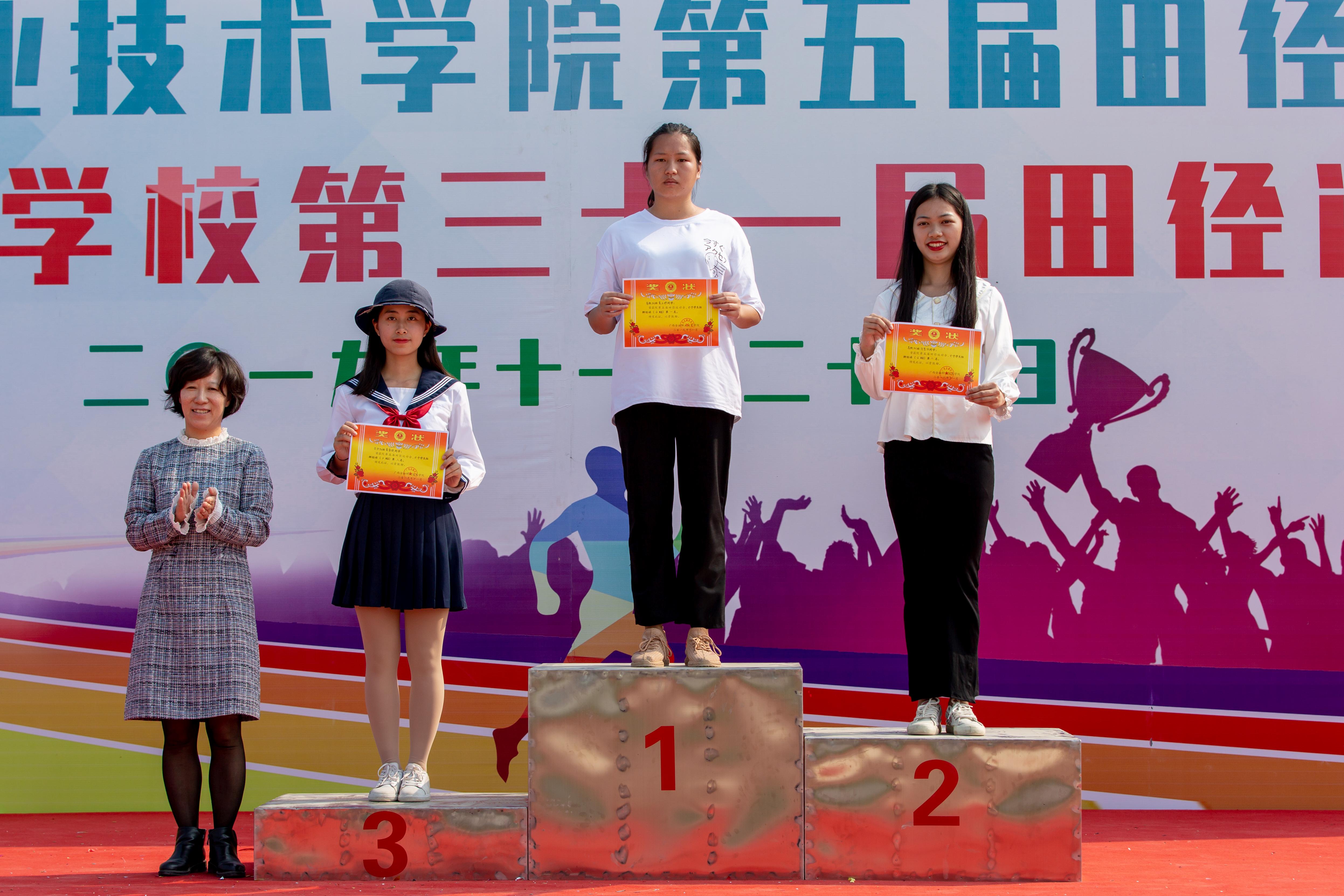 在昂揚的運動員進行曲中,運動員列隊有序進場。賽事由總裁判長——公共基礎部副主任鐘元博宣布獲團體總分比賽結果以及打破賽事紀錄結果。旅游管理系獲參賽單位團體總分第一名,經濟管理系、金融系分別獲得第二、第三名;13項個人比賽項目破校運會記錄,會計系、信息技術系、投資與保險系獲得了精神文明組織獎。