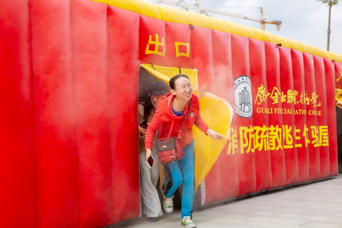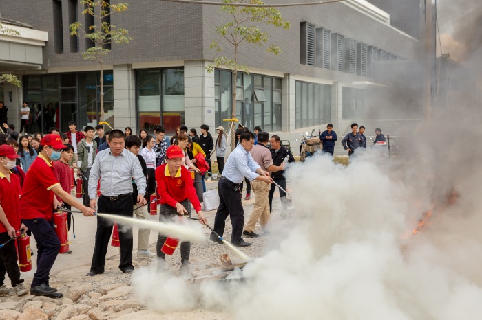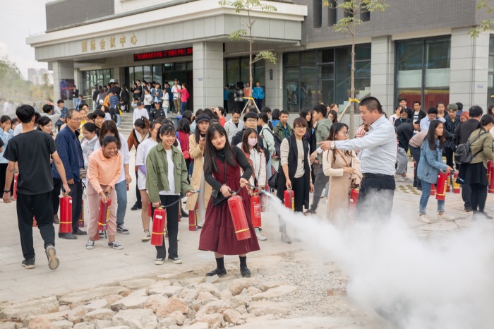 講座結(jié)束后,師生們共同演練了消防逃生和滅火器的使用。