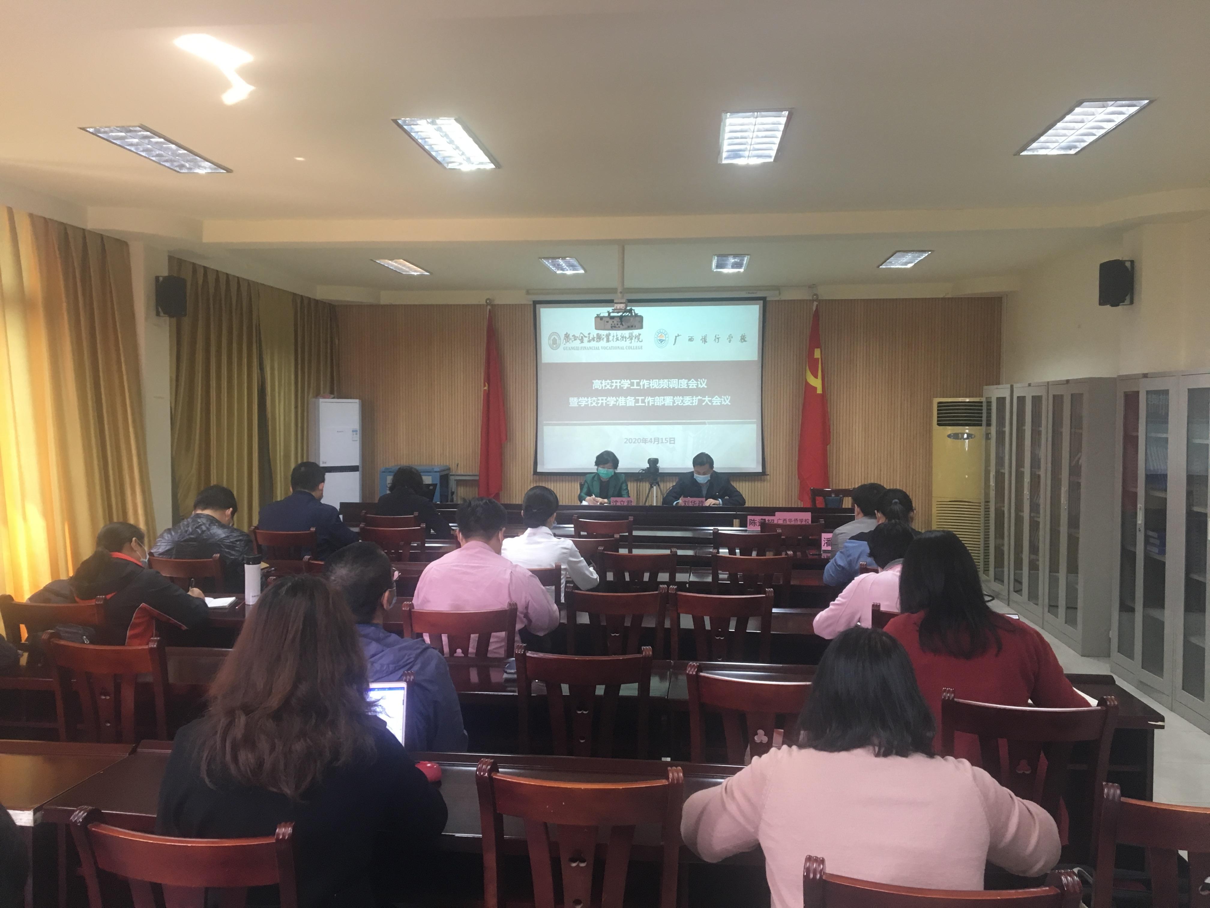 4月15日上午,在全區高校開學工作視頻調度會結束后,我校在東校區辦公樓6樓會議室召開開學疫情防控工作黨委擴大會議,迅速貫徹落實上級會議精神,校領導、各二層單位主要負責人參加會議。