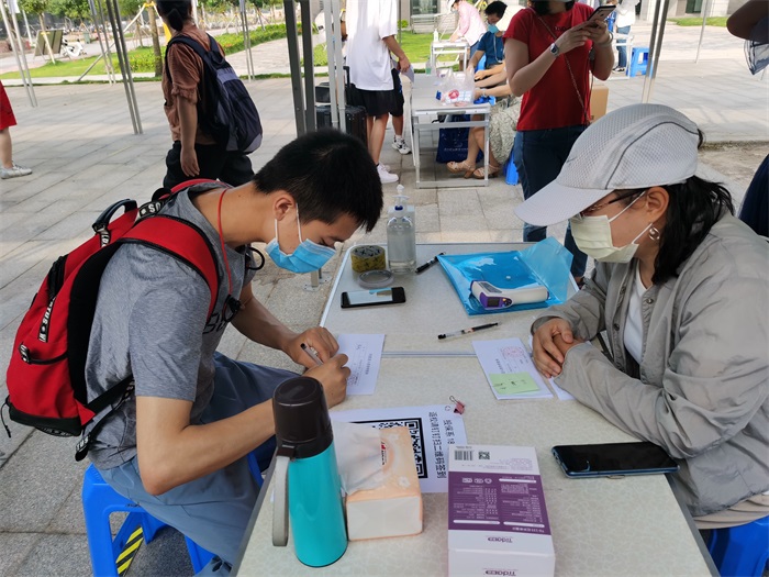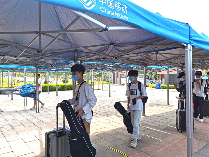 清晨陽光還未拂上樹梢,我校志愿者們便站在崗位上協助老師們等待著第二批學生的到來。他們各司其職,有的充當新返校生的領路人,講解進校流程;有的充當老師的得力助手,協助老師給返校學生測量體溫、行李消殺、審核返校申請審批單;有的充當返校學生的好幫手,義務幫助同學們扛行李……他們在烈日之下熱情服務,或許陽光刺眼,或許熱氣蒸騰,或許勞苦的汗水早已浸濕衣衫,但依舊沒有抵擋住志愿者們心中的熱情、因幫助別人而綻放的微笑。