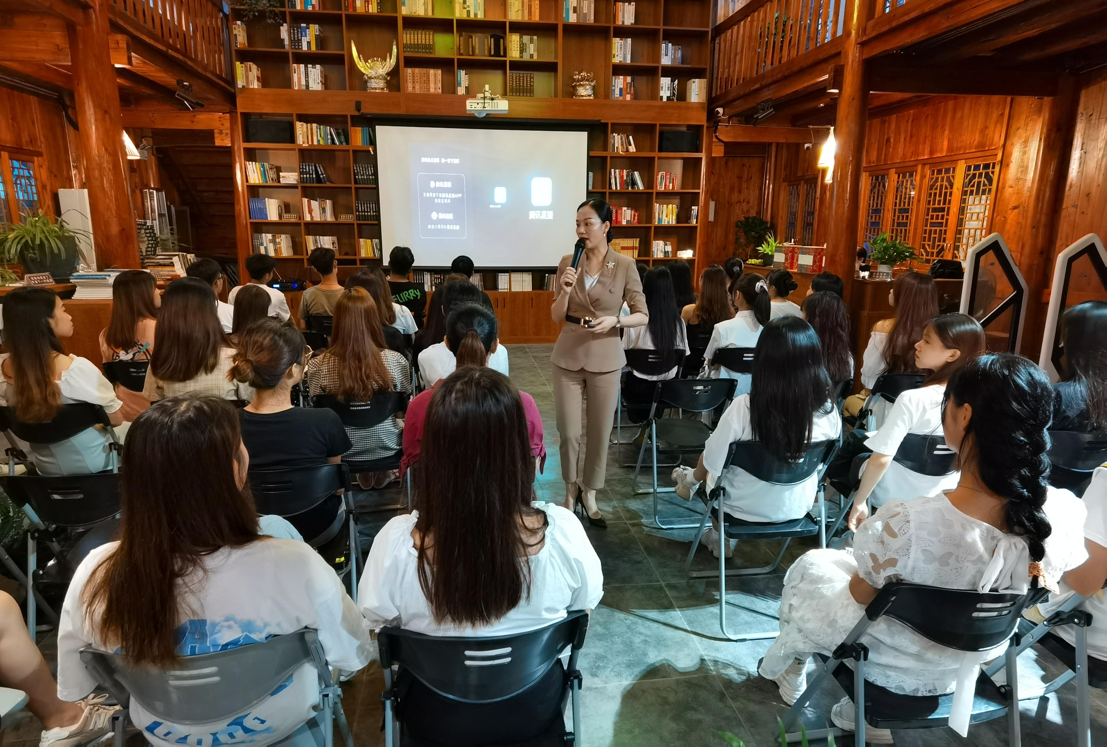 近年來,隨著互聯網技術的發展,直播帶貨的火爆,全國進入了前所未有的全民直播盛況。我校旅游管理系緊跟時代潮流,順應當下直播趨勢,打造校園直播新模式,與騰訊直播MCN短社播廣西基地盟主美霖學院攜手打造直播平臺,合力開啟直播帶貨課堂。7月14日晚,旅游管理系邀請到美霖學院聯合創始人、美霖學院線上商學院院長、廣西短社播MCN機構主播孵化學院院長盧淑艷導師親臨廣西金融職業技術學院民族書院授課。