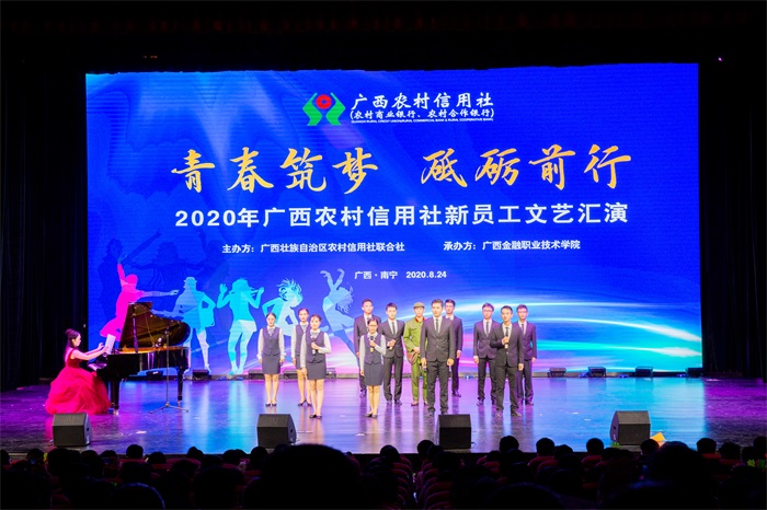 8月24日晚,全區(qū)農(nóng)村合作金融機(jī)構(gòu)2020年新員工培訓(xùn)班文藝匯演在我校西校區(qū)國際會(huì)議中心精彩上演。我校教職員工、自治區(qū)農(nóng)村信用聯(lián)社的領(lǐng)導(dǎo)和員工代表以及參加培訓(xùn)的900余名學(xué)員歡聚一堂,共同欣賞了一場(chǎng)精彩紛呈的文藝盛宴。晚會(huì)全程同步進(jìn)行現(xiàn)場(chǎng)直播,吸引了6萬多人在線觀看。