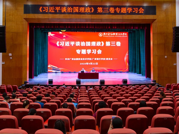 9月22日,我校在西校區國際會議中心舉行《習近平談治國理政》第三卷專題學習會,邀請廣西區委黨校領導力拓展部主任、教授,自治區講師團特騁專家許進品教授做專題報告。全體教職工參加學習會。專題學習會由黨委書記沈立君同志主持。
