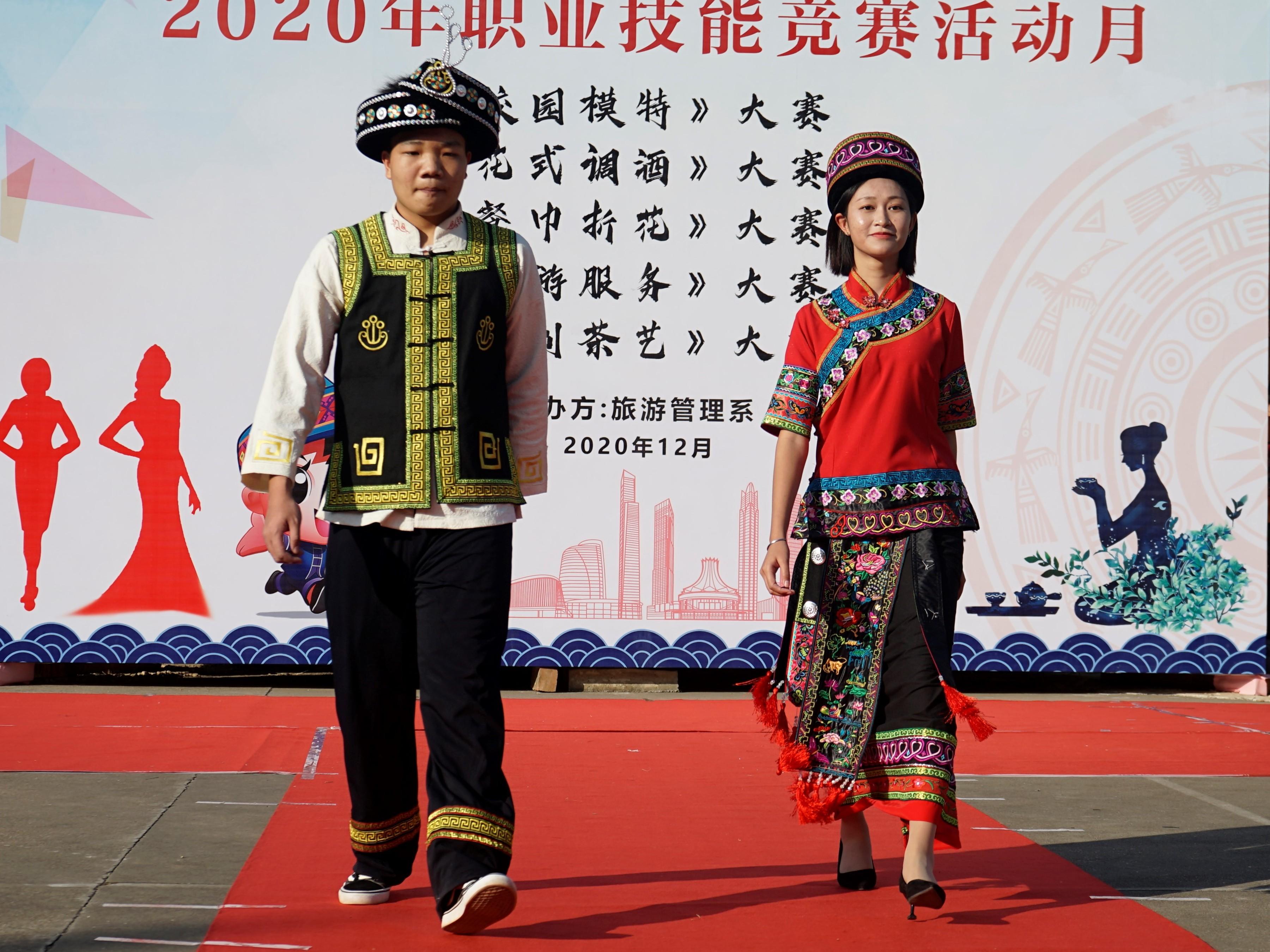 本次比賽共設有T臺秀和民族服裝展示兩個環節,晉級決賽的選手依次登臺展示。比賽中,選手們別具一格、匠心獨運、注重服裝的色彩搭配,從不同方面展現出我校學子多彩的創造能力和積極向上的青春面貌。民族服裝展示環節將廣西各少數民族特色服飾展現得淋漓盡致,將民族元素與現代流行元素相結合,拓寬了同學們的民族文化視野,提升了對民族服飾的識別力和鑒賞力。比賽間隔還穿插了歌曲、勁舞等節目表演。