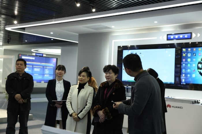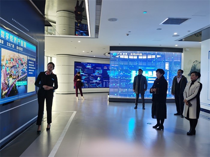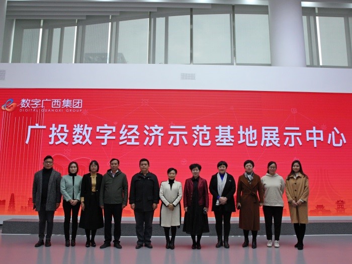 沈立君書記一行在數字廣西集團邁越科技有限公司總經理鄧彩蝶的引領下,參觀了廣投數字經濟示范基地展示中心,詳細了解了數字廣西集團的建設背景、發展歷程、產業布局、重點項目(壯美廣西·經濟社會云、愛廣西APP、廣西數字政務一體化平臺、教育信息化建設)等內容。我校一行還走訪了中國-東盟(華為)人工智能創新中心和中國-東盟信息港鯤鵬生態創新中心,深入了解了5G、云計算、大數據、人工智能等領域的發展和應用。隨后,與數字廣西集團有限公司相關人員進行座談,雙方就如何加強校企合作,共同推進中國-東盟金融大數據工程研究中心、“數字化智慧校園”建設和創新創業進行了探討。
