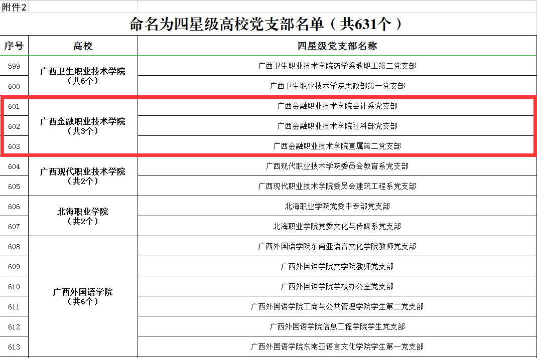 近日,自治區黨委教育工委公布第二批高校星級黨支部命名結果,我校金融系黨支部被命名為五星級黨支部,會計系黨支部、社科部黨支部、直屬第二黨支部被命名為四星級黨支部。這是我校加強黨建工作,以黨建為引領,助推學校全面發展取得的又一項榮譽。