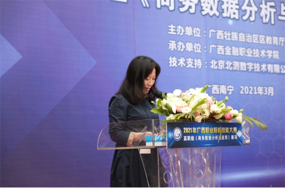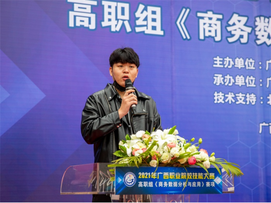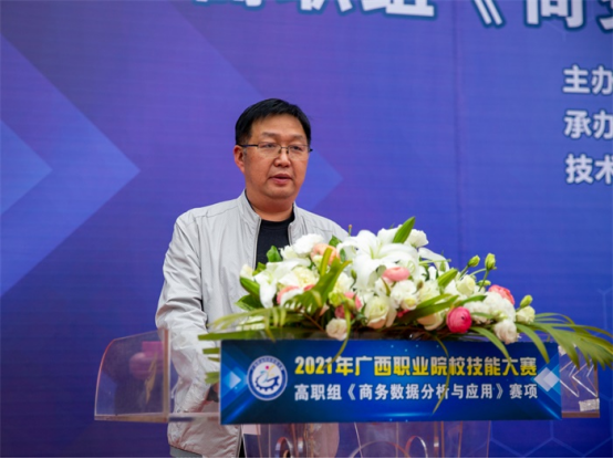 開幕式上,莫校長(zhǎng)致開幕詞,對(duì)出席競(jìng)賽的各位領(lǐng)導(dǎo)、來賓、全體裁判員、參賽選手表示熱烈歡迎,向本次比賽的技術(shù)支持企業(yè)表示衷心的感謝,對(duì)所有為舉辦本次大賽付出辛勤勞動(dòng)的工作人員表示親切的問候。莫校長(zhǎng)表示,“商務(wù)數(shù)據(jù)分析與應(yīng)用”是順應(yīng)了廣西數(shù)字經(jīng)濟(jì)產(chǎn)業(yè)發(fā)展的需要。本次大賽為我區(qū)職業(yè)院校師生切磋技藝和交流提供了良好平臺(tái),希望通過本次競(jìng)賽進(jìn)一步提高學(xué)生職業(yè)技能與市場(chǎng)需求的吻合度,推動(dòng)我區(qū)商務(wù)大數(shù)據(jù)高技能人才的成長(zhǎng)成才,為建設(shè)壯美廣西、共圓復(fù)興夢(mèng)想提供強(qiáng)有力的技能人才支撐。祝愿所有參賽選手以良好的心態(tài)參加比賽,充分發(fā)揮技能才干,賽出風(fēng)格,賽出水平,以良好的姿態(tài)開啟“十四五”的新征程!