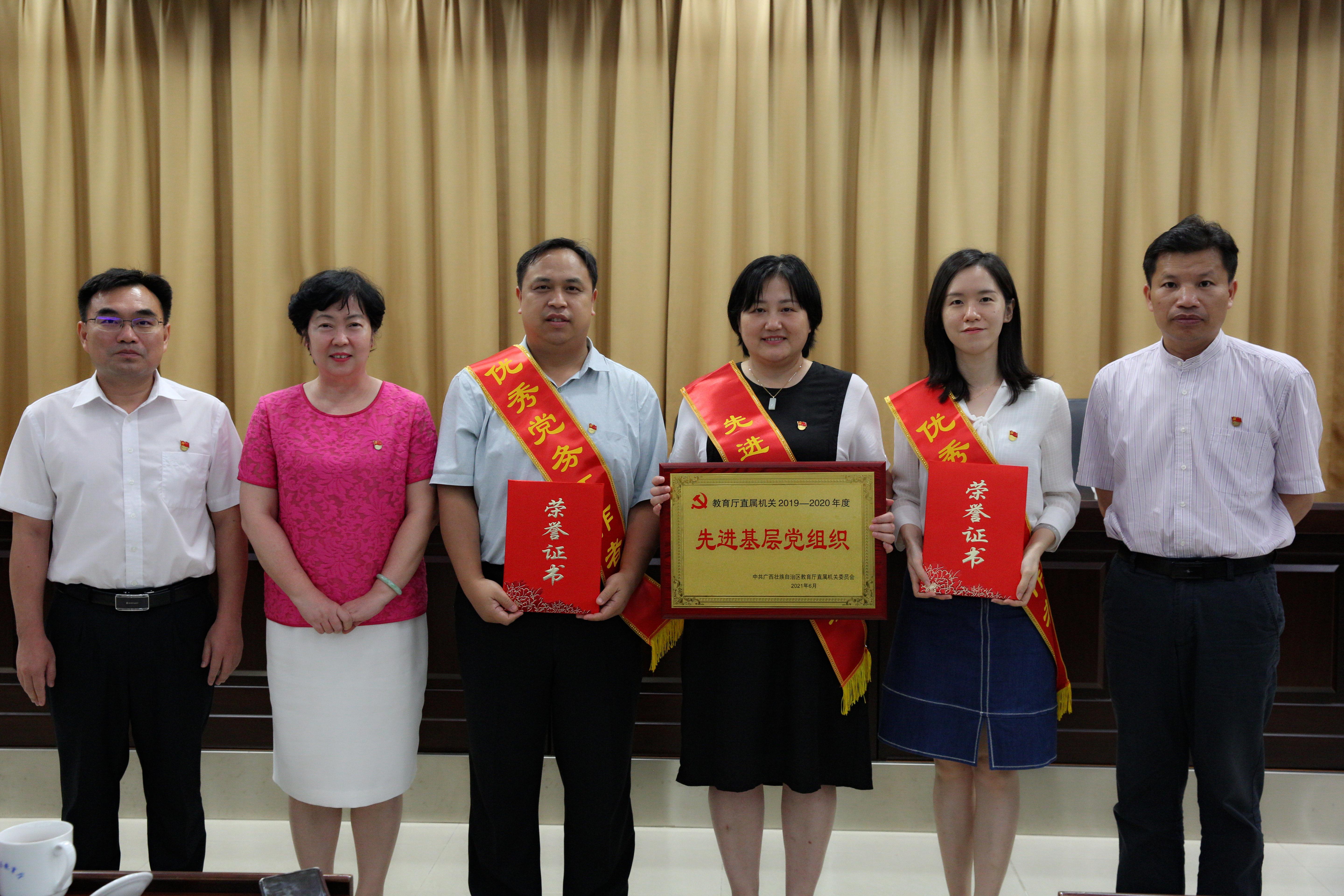 6月23日,自治區教育廳直屬機關開展慶祝中國共產黨成立100周年暨“兩優一先”表彰大會。表彰2019—2020年度先進基層黨組織、優秀共產黨員和優秀黨務工作者。我校黨委書記沈立君、黨委副書記、紀委書記劉華政、副院長潘大勝以及“兩優一先”獲獎單位(個人)代表參加會議。