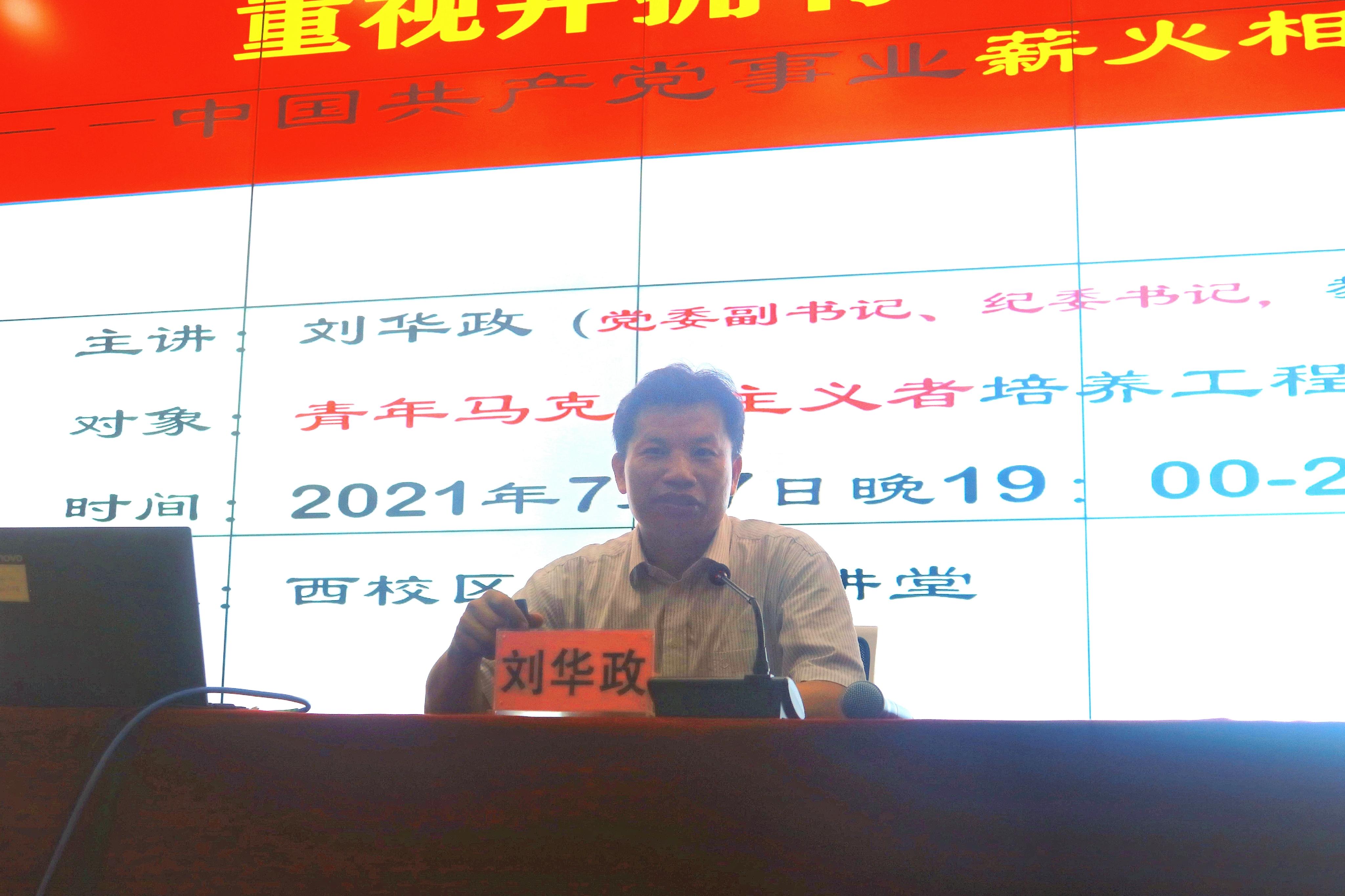 開班儀式上,學校黨委副書記、紀委書記劉華政以“重視并擁有青年一代——中國共產黨事業薪火相傳的密碼”為題,為第四期學員們講授了別開生面、內涵豐富的“青馬第一課”。劉華政副書記以習近平總書記在慶祝中國共產黨成立100周年大會上寄語青年的講話為切入點,強調青年在歷史的發展中起到承前啟后的關鍵作用,在開創祖國美好未來的新征程中,青年責任重大、使命光榮。最后,劉華政副書記充分肯定了我?!扒囫R工程”開展以來的成效,并表達了對青馬學員的祝愿,希望同學們不斷從優秀走向卓越,從今天校園中的學生骨干真正成長為明日各行各業的領軍人物。