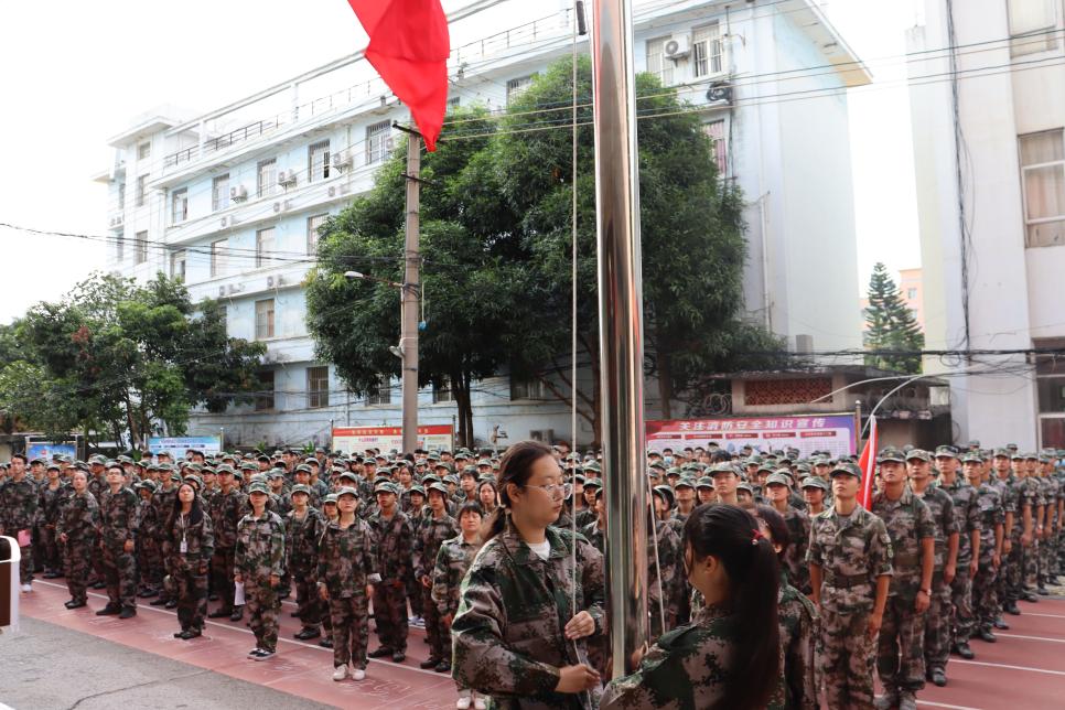 最后,廣西金融職業技術學院(廣西銀行學校)黨委書記沈立君為軍訓團授旗。軍訓是入校的第一課,在接下來一周的軍訓中同學們要抓住強健體魄、磨煉意志的大好機會以軍人的標準嚴格要求自己,圓滿完成職校生活第一課。