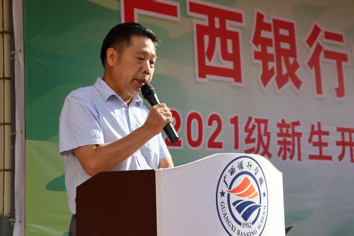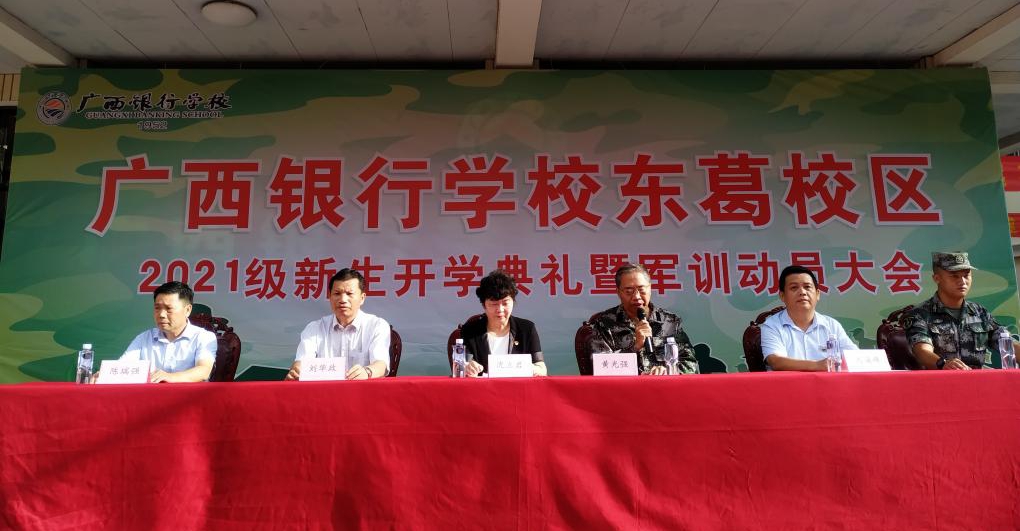 8月28日,廣西銀行學校2021級學生開學典禮暨軍訓動員大會在我校東葛校區舉行。我校領導、全體師生及新生軍訓教官參加大會。