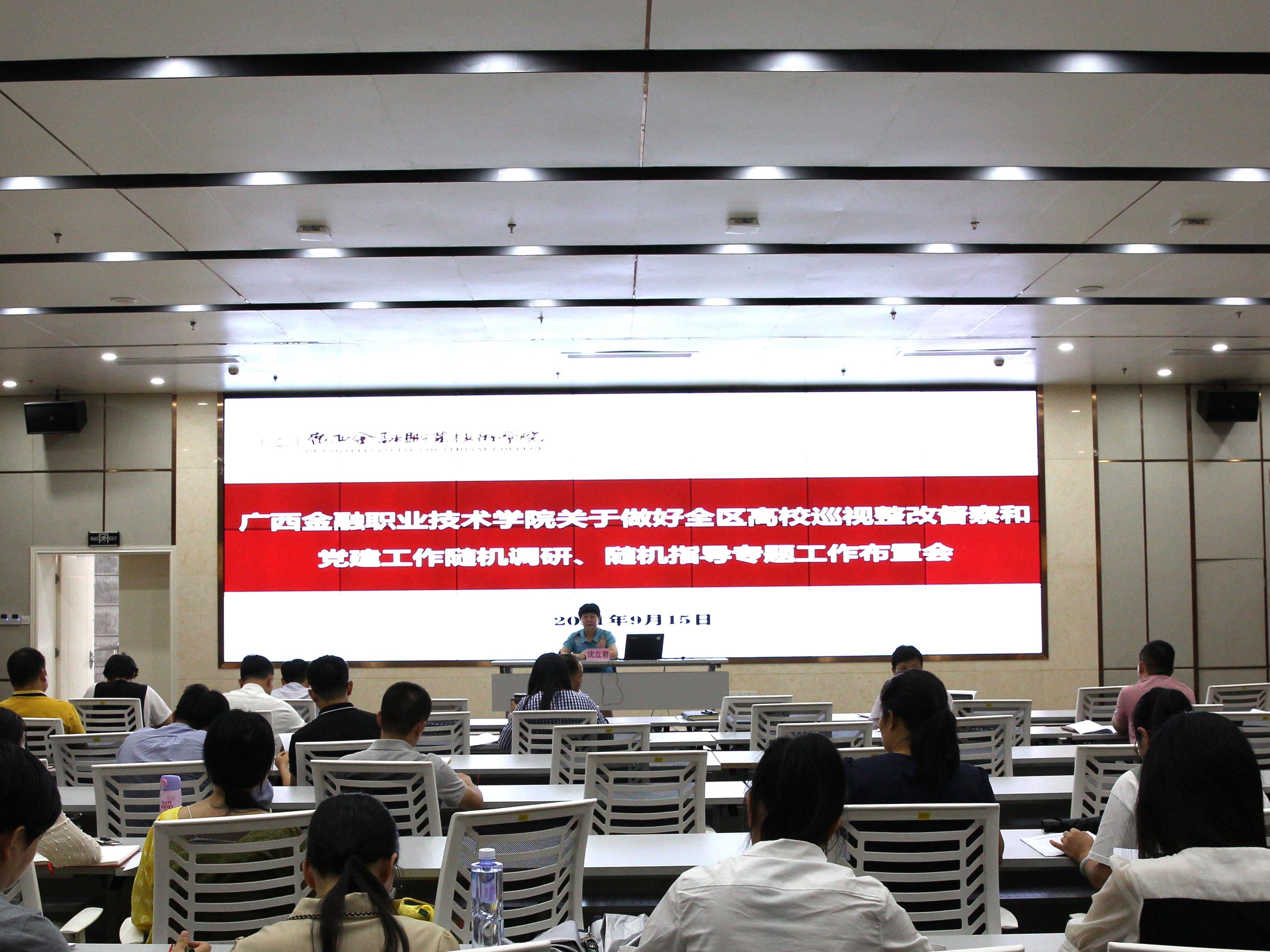 根據《自治區黨委教育工委關于開展全區高校巡視整改督查和黨建工作隨機調研、隨機指導工作的通知》精神,9月15日下午,我校在西校區道德大講堂召開關于做好全區高校巡視整改督查和黨建工作隨機調研、隨機指導專題工作布置會,我校黨委委員、各黨支部委員、各單位主要負責人參加會議,會議由黨委書記沈立君主持。
