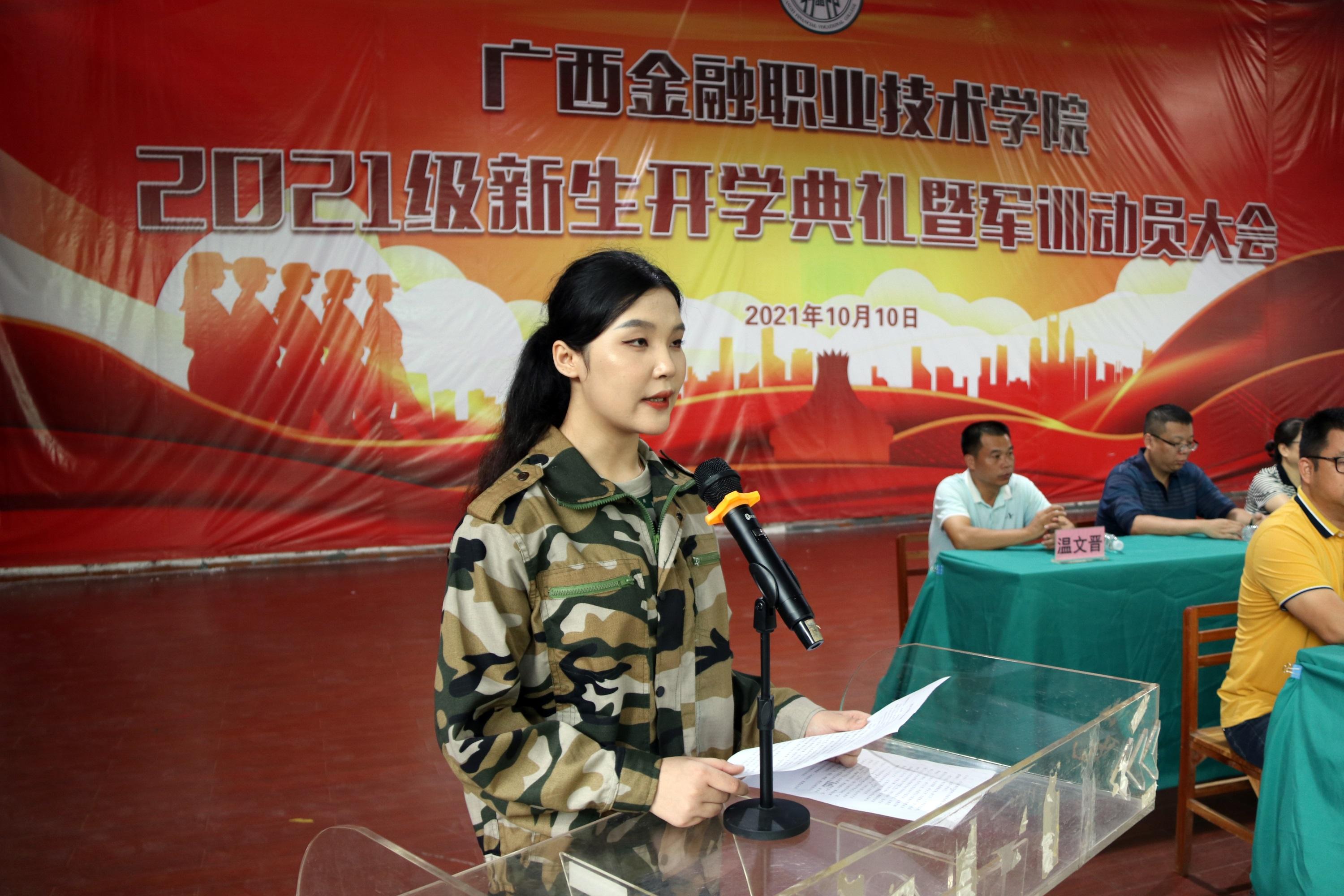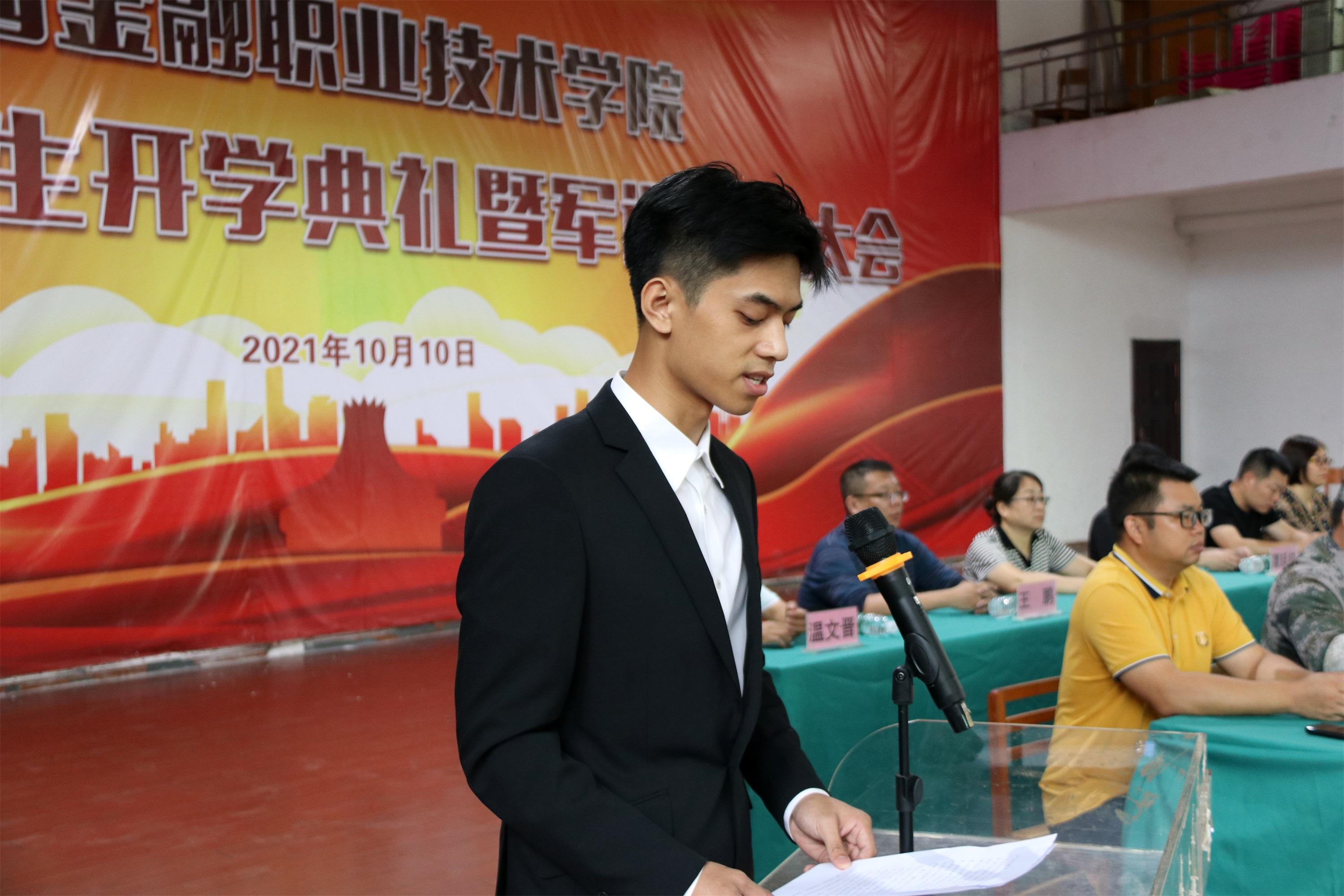 旅游管理系酒店管理2102班黃雅琪同學和金融系金融管理2108班黃慧婷作為新生代表發言。他們感激學校、老師們的親切關懷以及學姐、學長們的熱情幫助,同時表示在未來的三年中攜手共進,砥礪前行,爭做可堪大任的時代新人。