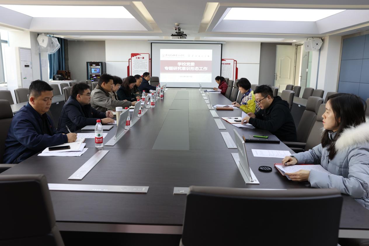 1月11日,我校在西校區行政樓512會議室召開黨委擴大會議,專題研究意識形態工作。學校領導、黨委委員、黨委宣傳部、組織人事處、紀檢監察室相關負責人參加會議。會議由黨委書記沈立君主持。