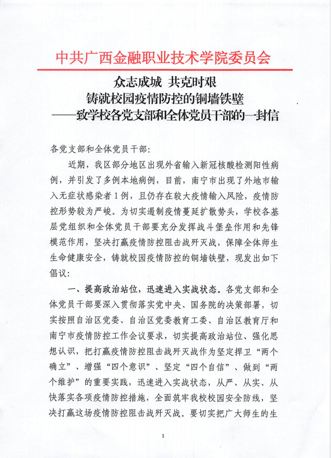 眾志成城 共克時(shí)艱 鑄就校園疫情防控的銅墻鐵壁——致學(xué)校各黨支部和全體黨員干部的一封信