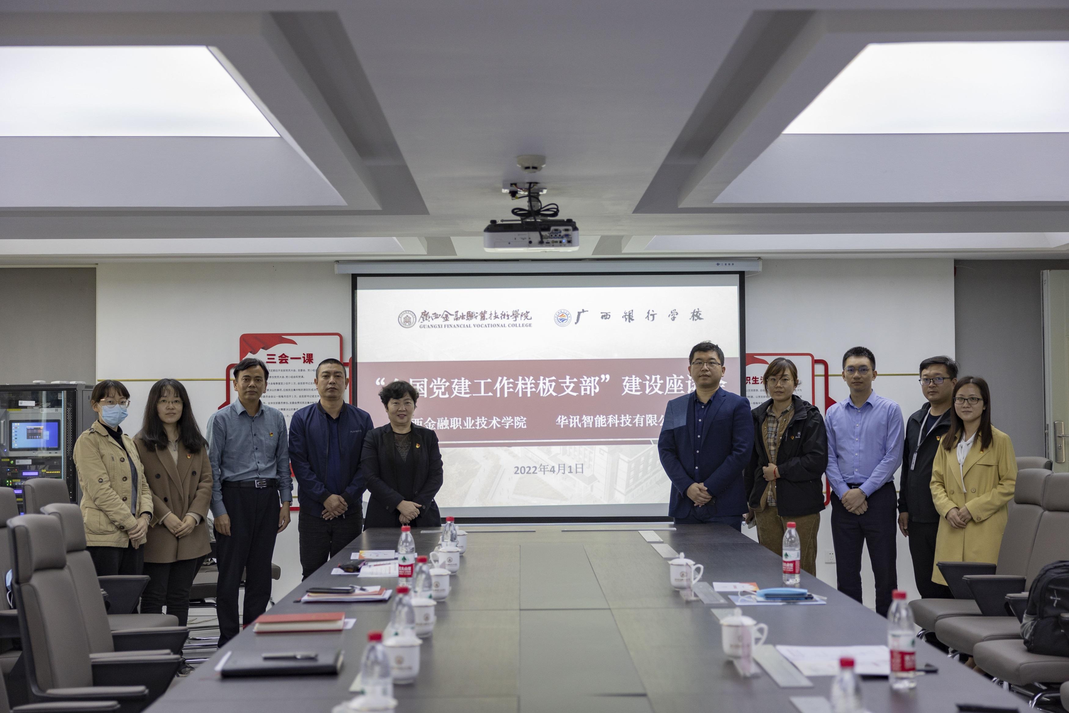 4月1日上午,我校在西校區512會議室召開“全國黨建工作樣板支部”建設座談會。學校黨委書記沈立君,黨委宣傳部、組織人事處、金融系黨支部相關負責人以及華訊智能科技有限公司銷售總監張旭、綜合業務部總經理張光遠、綜合業務部副總經理鄧廷俊出席會議。會議由沈立君書記主持。