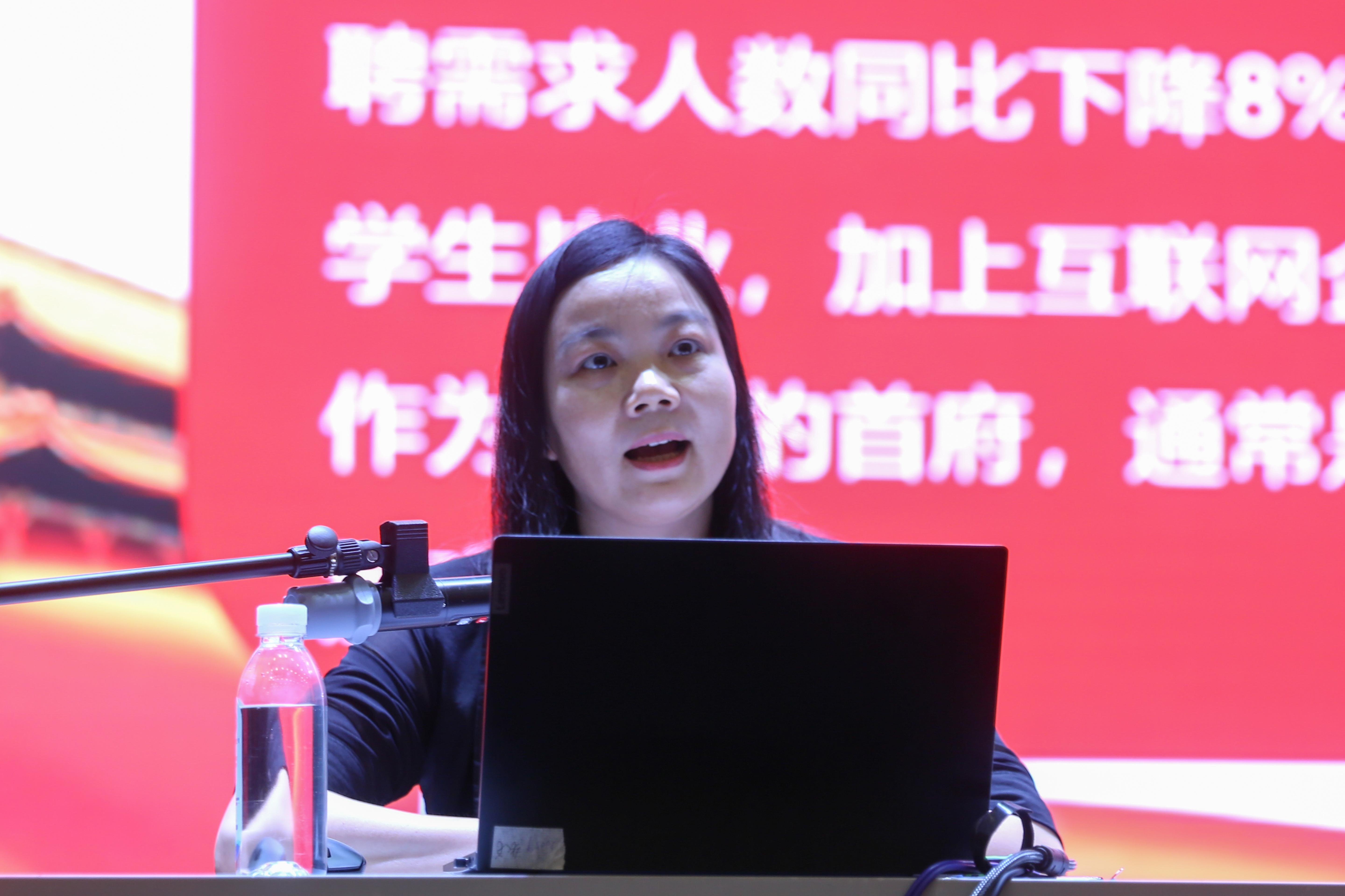 就業指導講座會上,南寧市金融辦林曉鳳科長為畢業生進行了就業形勢分析:由于現在疫情的影響,現在就業崗位減少,就業人數增加,大學生就業將會有一定的難度,需進一步引導畢業生樹立正確的就業觀,根據自身情況選擇就業方向,抓緊機會,做好職業生涯規劃,積極努力,堅定信念,為順利就業做好準備。林曉鳳科長用自己的親身經歷,指導金融學院畢業生如何擇業,并對金融行業、地方金融組織進行了介紹及分析,為學生提供行業用人要求分析,引導畢業生做好求職準備。林曉鳳科長的就業分析深刻、針對性強,生動有效,學生們受益匪淺。