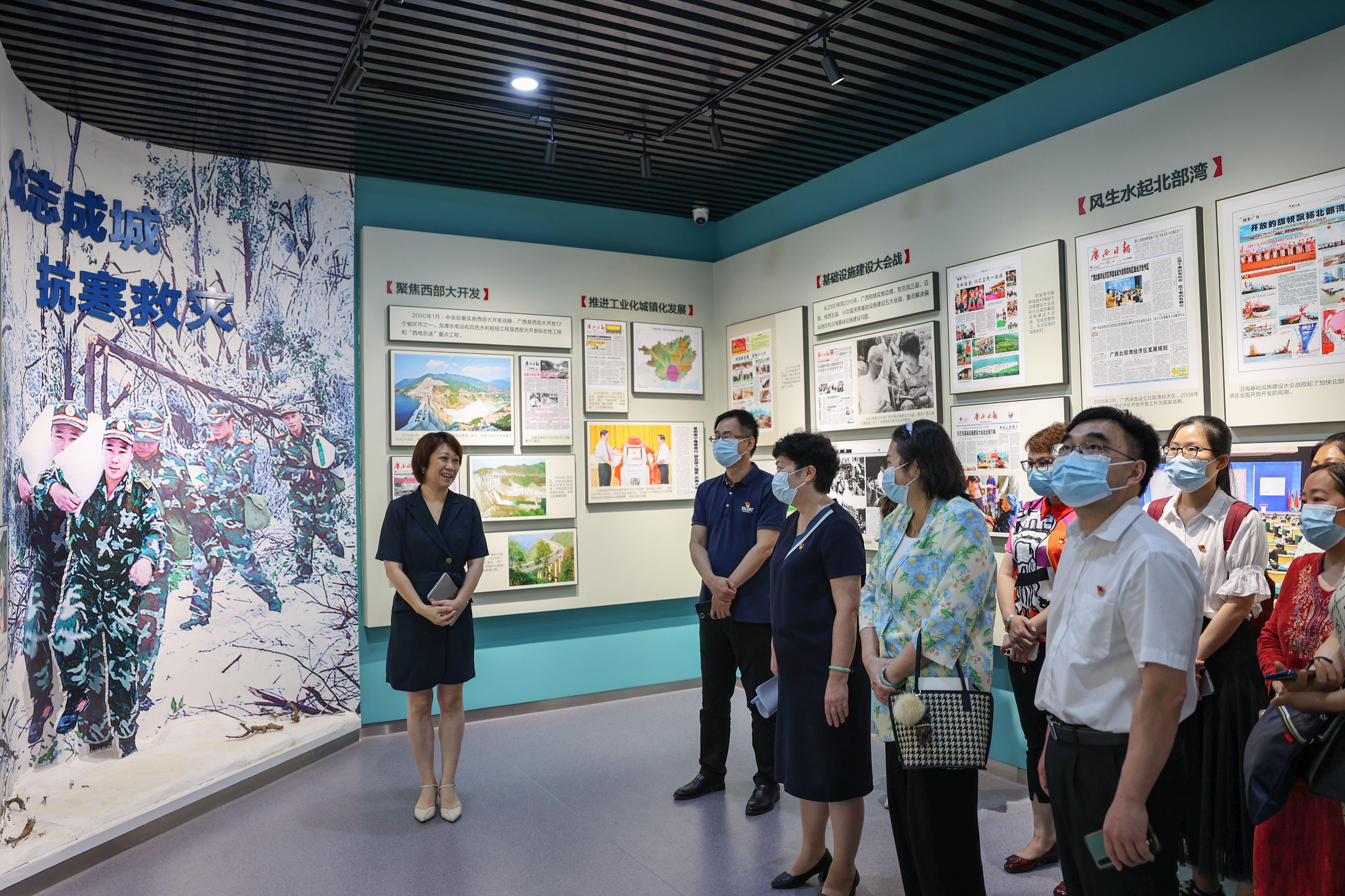 我校一行在廣西日報社領導的引領下先后參觀了廣西日報社報史多媒體展示館,我校黨員同志們跟隨講解員依次參觀了廣西日報社報史館12個展廳,“廣西云”融媒體中心、“廣西云”融媒演播廳、廣西日報全媒體夜班編輯中心、“廣西云”發布廳以及“廣西云”指揮中心。不僅了解了廣西日報的新聞傳播發展史,也了解了廣西在新中國成立以來發生的巨大變化,學習了融媒體傳播平臺的先進經驗和做法,大家獲益良多,思想上得到了提升。
