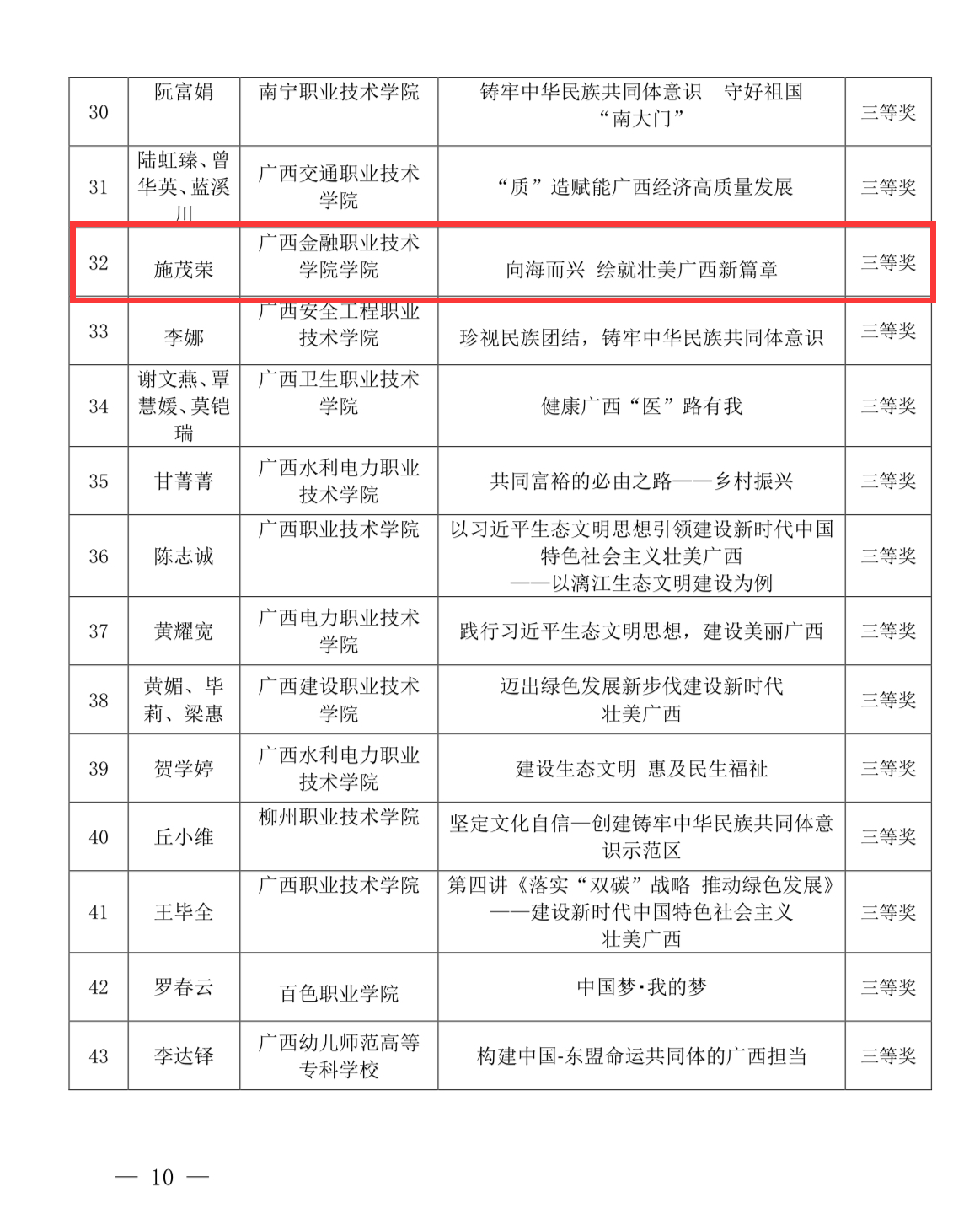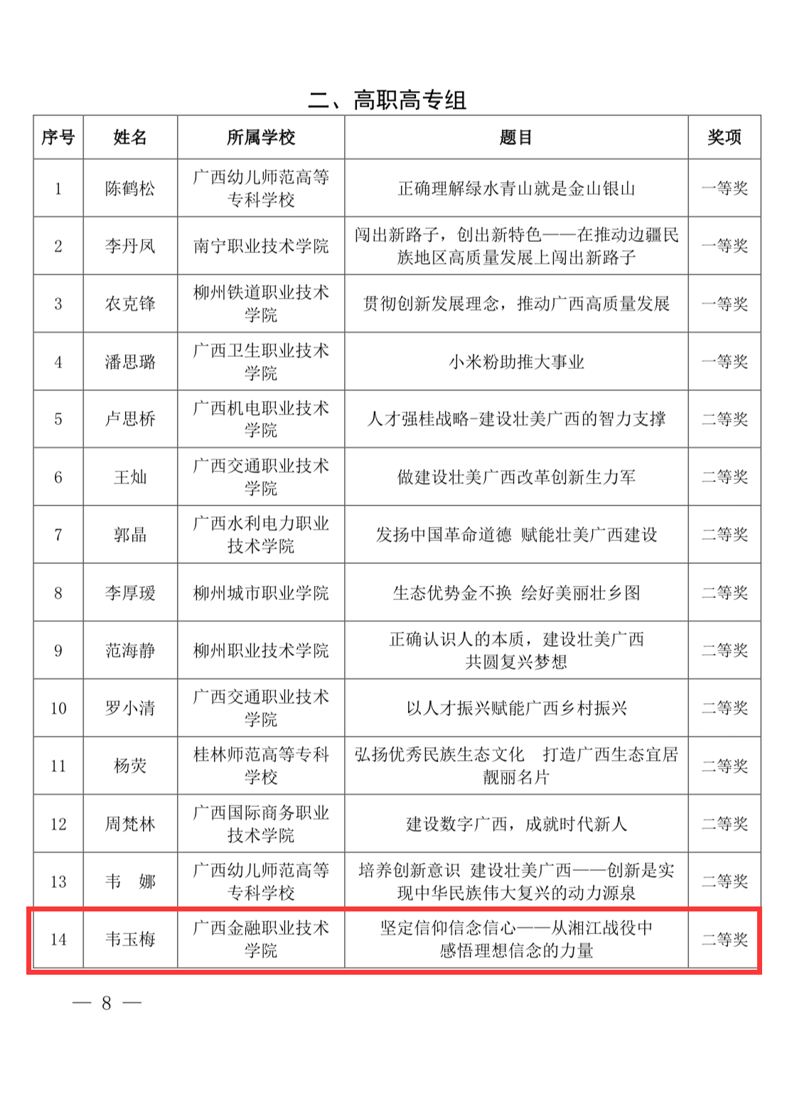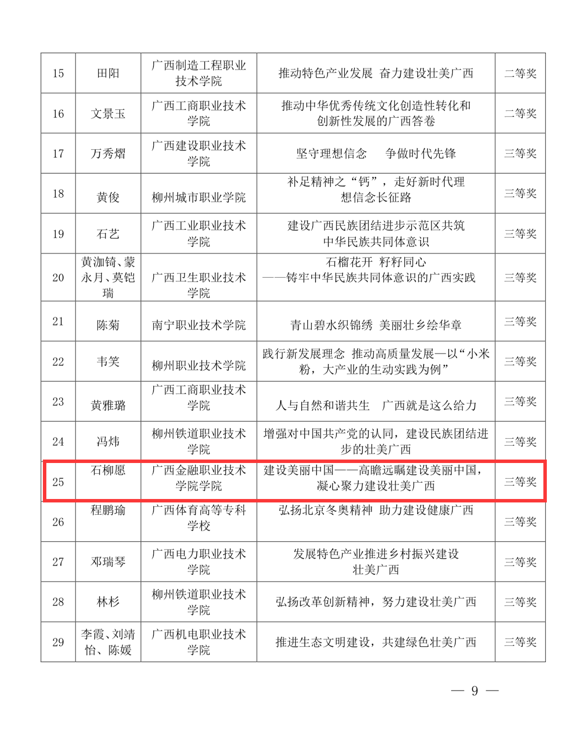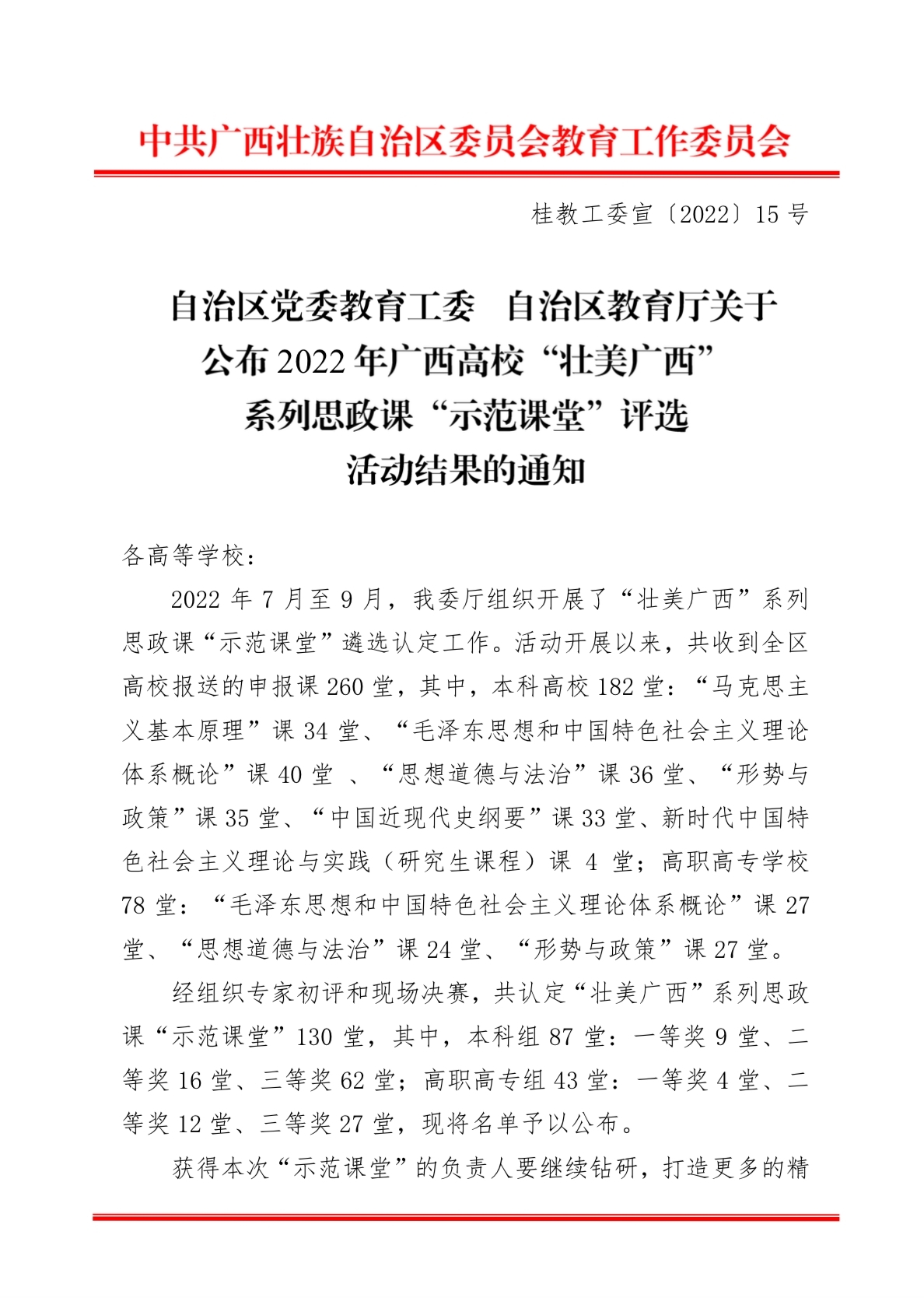 近期,自治區黨委教育工委、自治區教育廳公布2022年廣西高?!皦衙缽V西”系列思政課“示范課堂”獲獎名單。我校1堂思政課榮獲二等獎、2堂思政課榮獲三等獎。