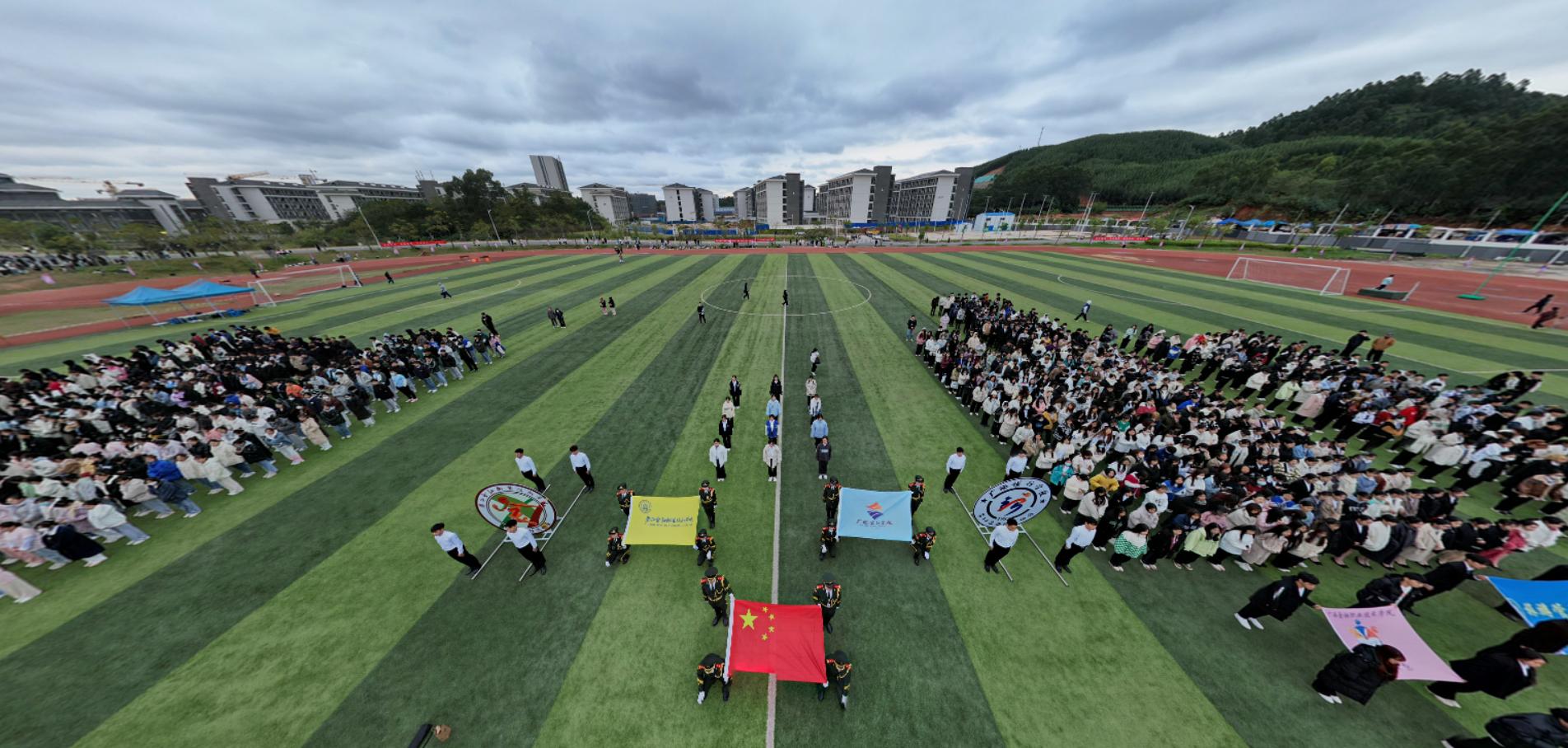 開幕式上,學校國旗護衛隊護衛著國旗、校旗、會徽莊嚴入場。各系部精心編排進行方隊展演,既凸顯系部文化特色,又表達了愛國榮校的赤子之心。金院銀校青年熱情自信的身姿成為現場一道靚麗的風景線。