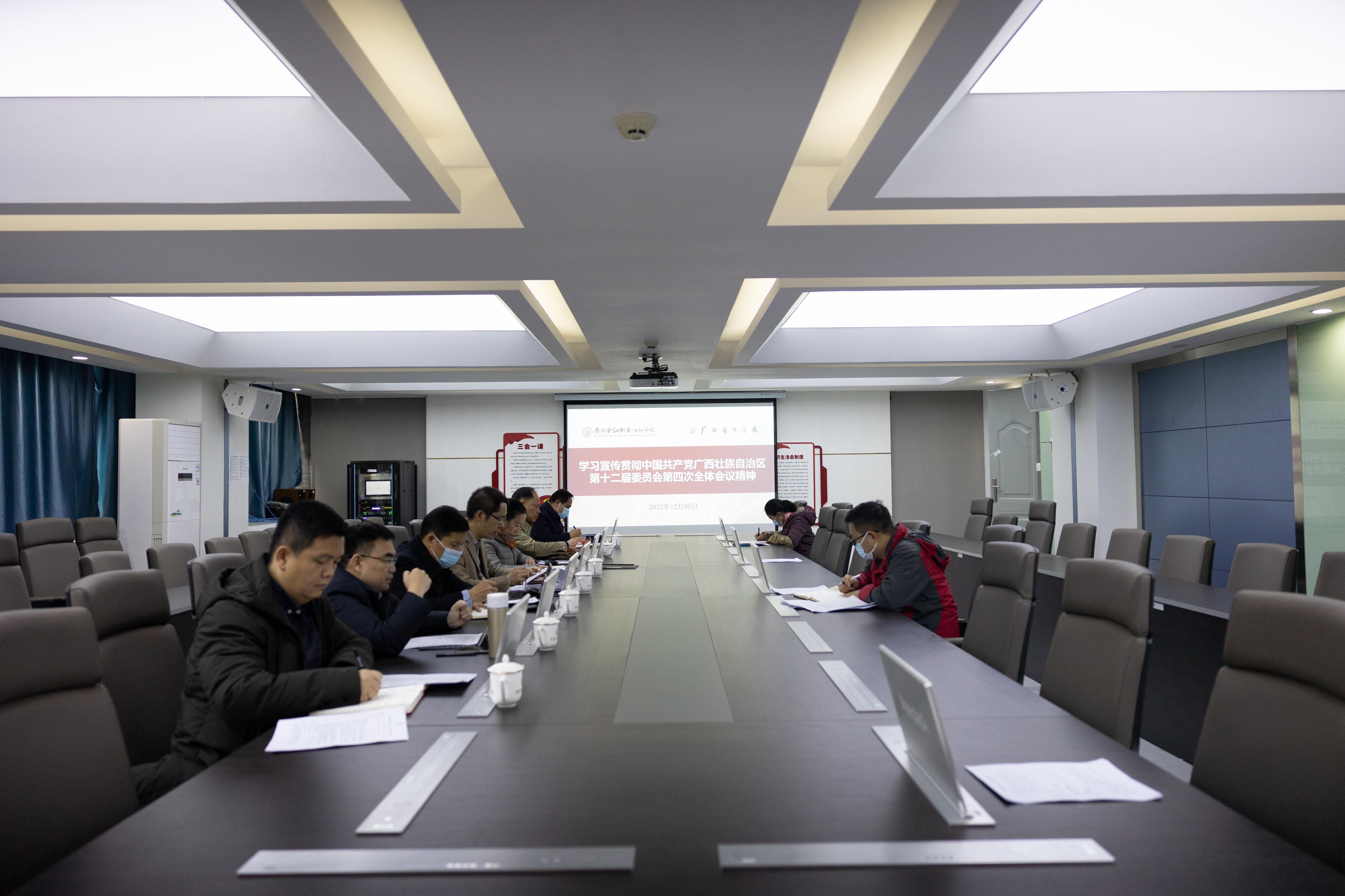 12月5日上午,我校召開黨委擴大會議專題學習宣傳貫徹中國共產黨廣西壯族自治區第十二屆委員會第四次全體會議精神。學校領導、黨委委員、組織人事處、紀檢監察室相關負責人參加會議。黨委書記李高巖主持會議并講話。