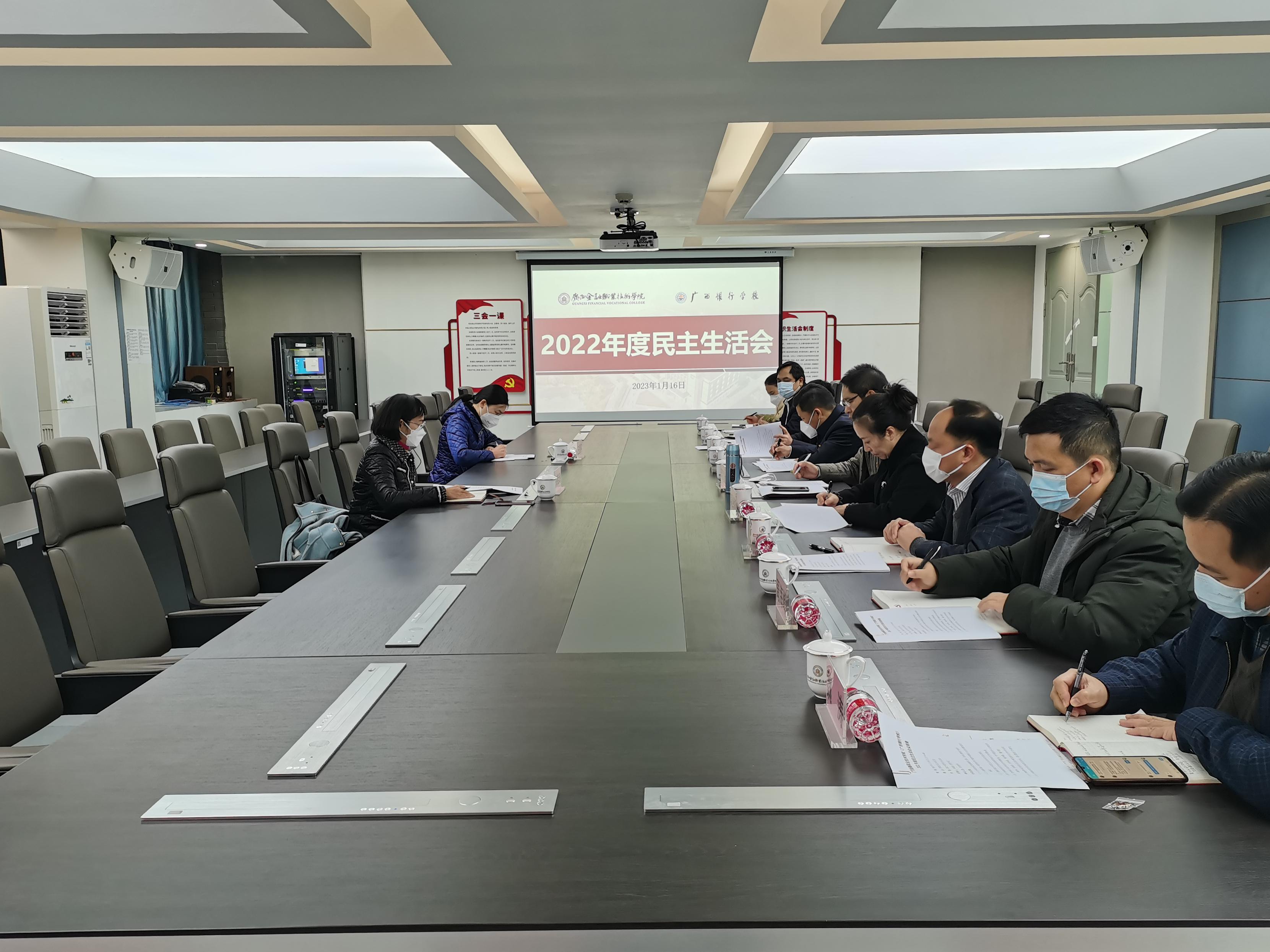 2023年1月16日,我校黨委在西校區512會議室召開2022年度民主生活會,自治區教育廳機關黨委副書記、紀委書記農桂玲,自治區紀委監委駐教育廳紀檢組第一紀檢監察室主任王里平到會指導,學校黨委班子領導參加會議,校長莫海燕、黨委委員、組織人事處、紀檢監察室主要負責人列席會議,會議由黨委書記李高巖主持。