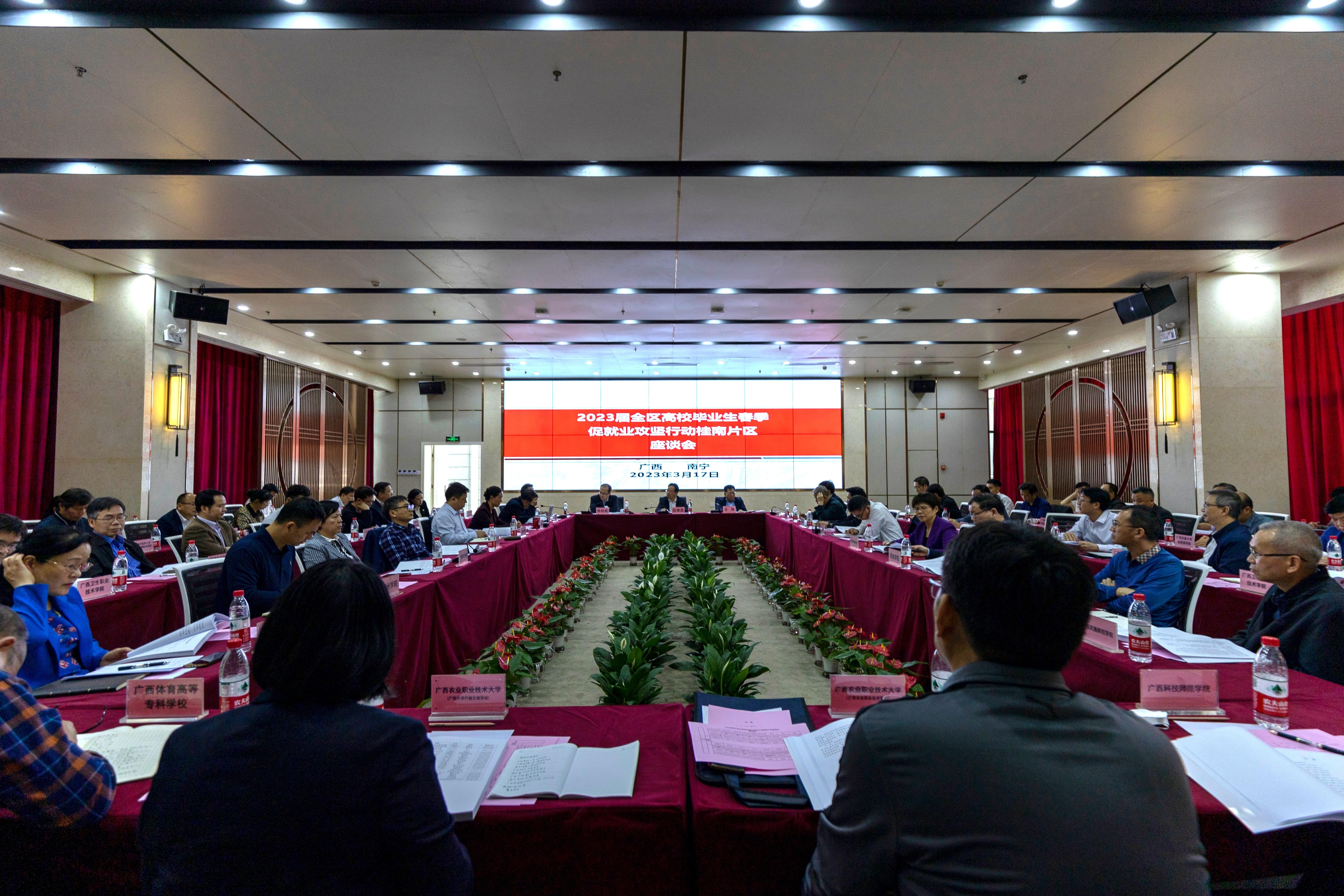 通過此次會議,自治區教育廳部署推進2023屆高校畢業生春季促就業攻堅行動工作,分析研判當前就業市場狀況及畢業生求職心態,各高校也充分交流分享了畢業生就業工作中做法和經驗,為進一步貫徹落實好有關工作要求,為做好桂南以及全區2023屆畢業生就業工作奠定基礎。