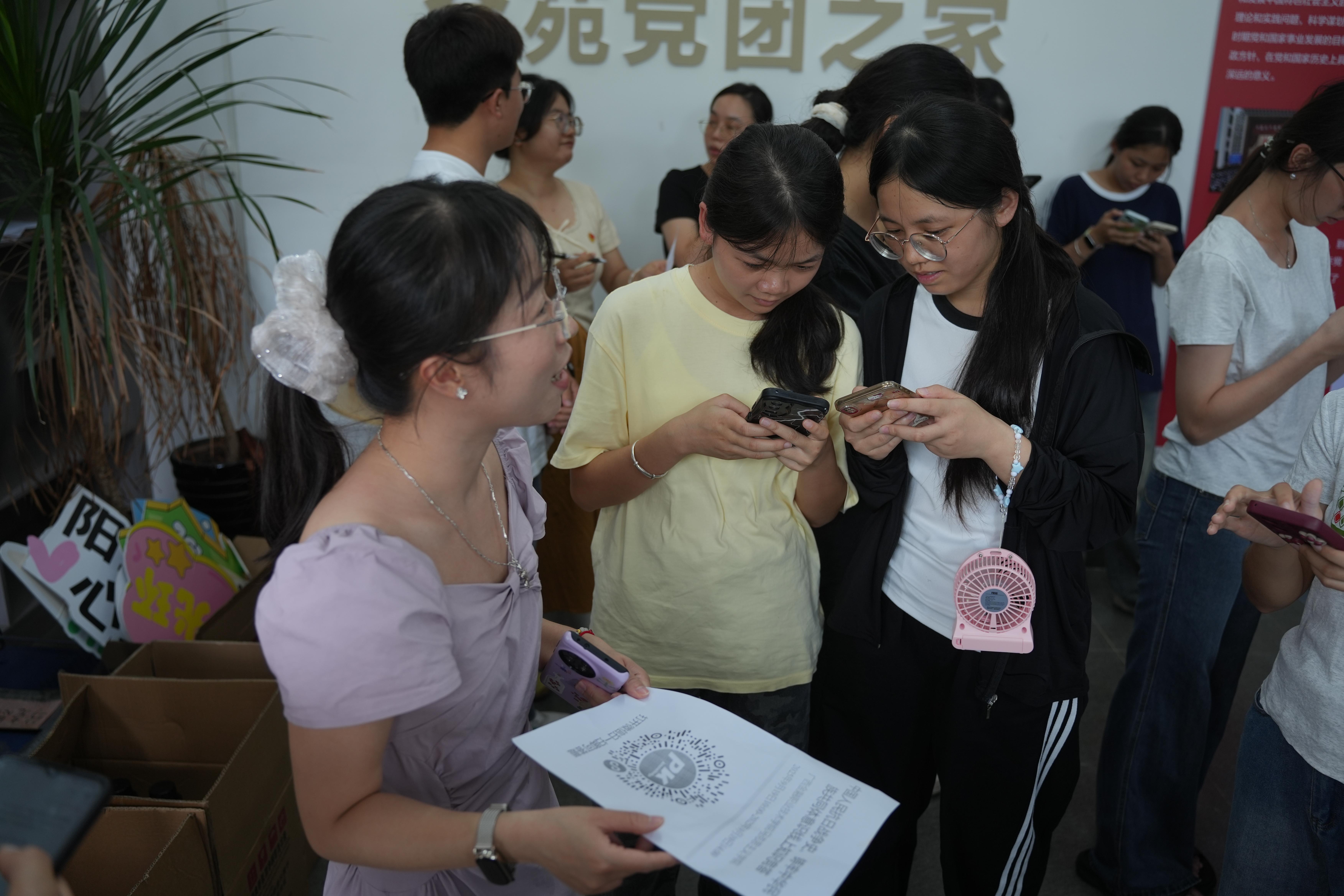 本次活動(dòng)設(shè)置知識(shí)宣講和知識(shí)競(jìng)答兩個(gè)環(huán)節(jié)。在宣講環(huán)節(jié),馬克思主義學(xué)院王幽含、鐘雨晴兩位思政課教師圍繞抗日戰(zhàn)爭(zhēng)史中的關(guān)鍵事件與鑄牢中華民族共同體意識(shí)的核心內(nèi)涵,以“微型講解+即時(shí)互動(dòng)”的形式展開(kāi)宣講,引導(dǎo)師生在問(wèn)答中感悟歷史厚度與精神力量,來(lái)自人工智能學(xué)院的楊晅同學(xué)、投資與保險(xiǎn)學(xué)院的汪子鶴同學(xué)和張凱同學(xué)現(xiàn)場(chǎng)分享了參加宣傳學(xué)習(xí)的收獲和體驗(yàn)。知識(shí)競(jìng)答環(huán)節(jié)則將學(xué)習(xí)熱情推向高潮,師生通過(guò)掃描現(xiàn)場(chǎng)二維碼進(jìn)入答題系統(tǒng),每當(dāng)屏幕顯示“答題成功”,參與者便能即時(shí)領(lǐng)取定制書(shū)簽、主題文創(chuàng)等精美禮品,在輕松競(jìng)技中鞏固所學(xué),現(xiàn)場(chǎng)掌聲與歡笑聲此起彼伏,讓理論學(xué)習(xí)在生動(dòng)實(shí)踐中入腦入心。