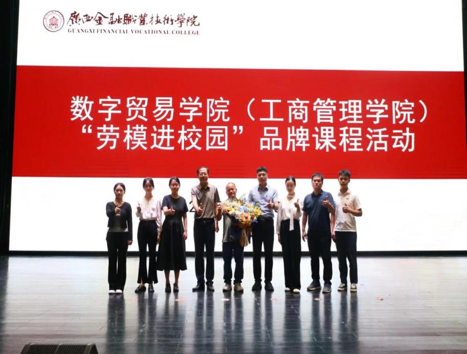 廣西電子商務(wù)協(xié)會黨總支書記、執(zhí)行會長張學清結(jié)合當前數(shù)字經(jīng)濟背景下電商行業(yè)的發(fā)展趨勢,指出數(shù)字貿(mào)易領(lǐng)域正迎來廣闊機遇,同時也對人才的專業(yè)素養(yǎng)與實踐能力提出更高要求。他表示,勞模黃忠文的奮斗故事,是勞動精神的生動寫照。希望同學們以勞模為榜樣,將專業(yè)學習與行業(yè)需求緊密結(jié)合,主動參與實踐鍛煉,為電商領(lǐng)域發(fā)展注入新活力。