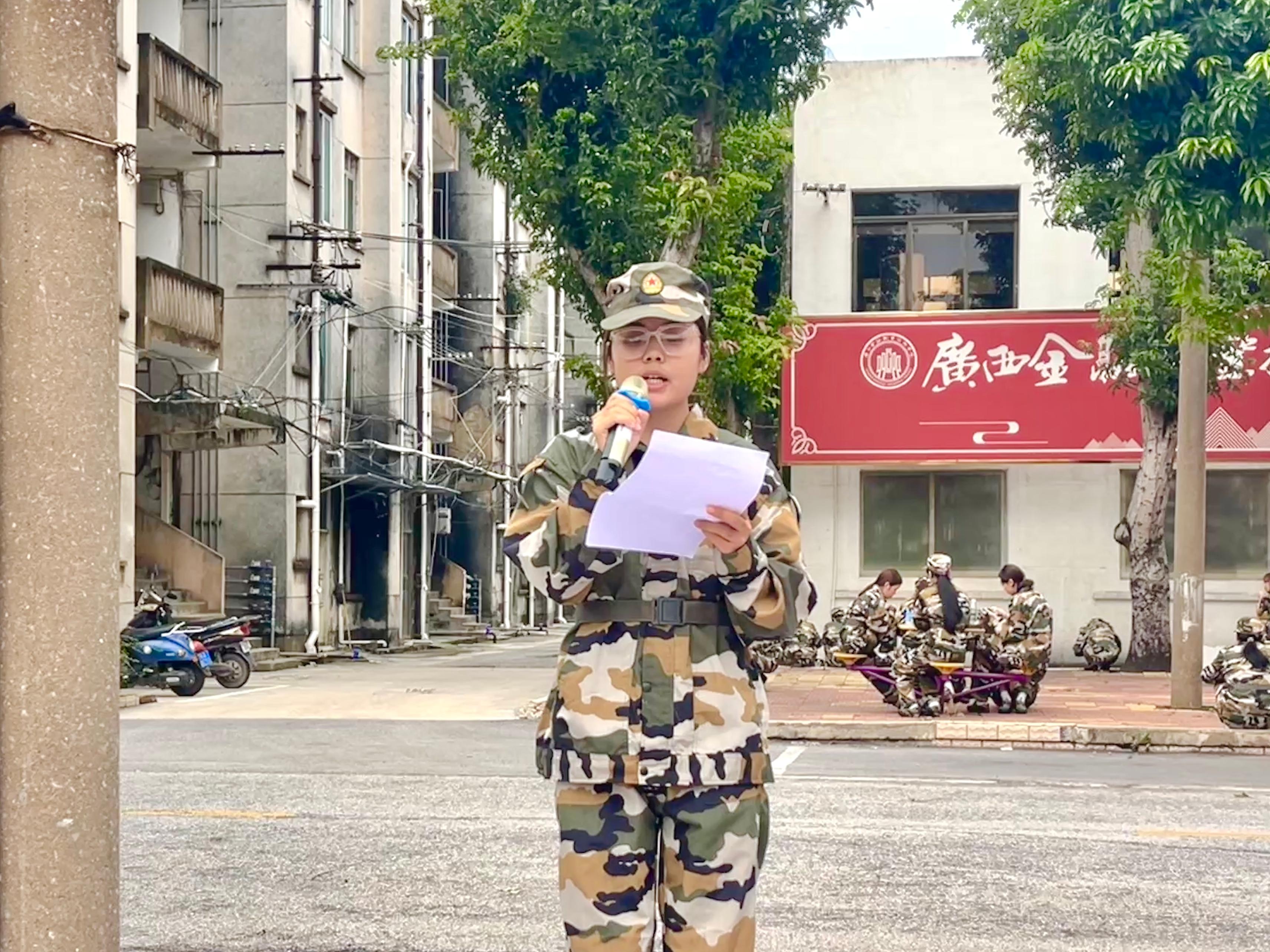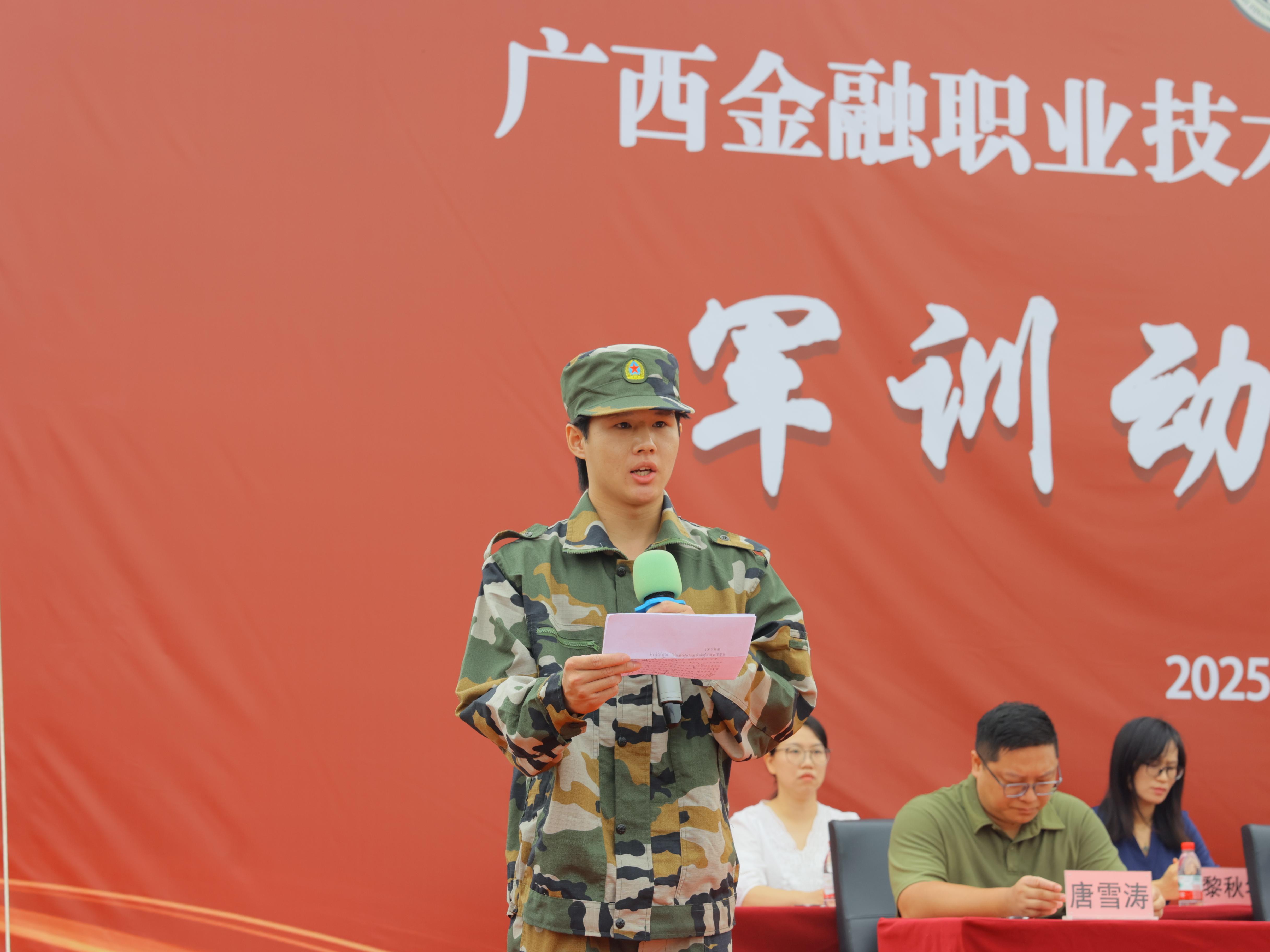 文化與旅游學(xué)院高鐵乘務(wù)2502班梁婭萱同學(xué)、金融學(xué)院金融服務(wù)與管理2502班劉靖銘同學(xué)作為學(xué)生代表發(fā)言,他們表示會在烈日下挺直脊梁,展現(xiàn)青春的朝氣;在訓(xùn)練中互幫互助,凝聚集體的力量;在休息時交流分享,收獲珍貴的友誼。我們要把軍訓(xùn)中的收獲轉(zhuǎn)化為學(xué)習(xí)的動力,在廣西金融職業(yè)技術(shù)學(xué)院的沃土上,書寫屬于我們這一代人的青春華章。