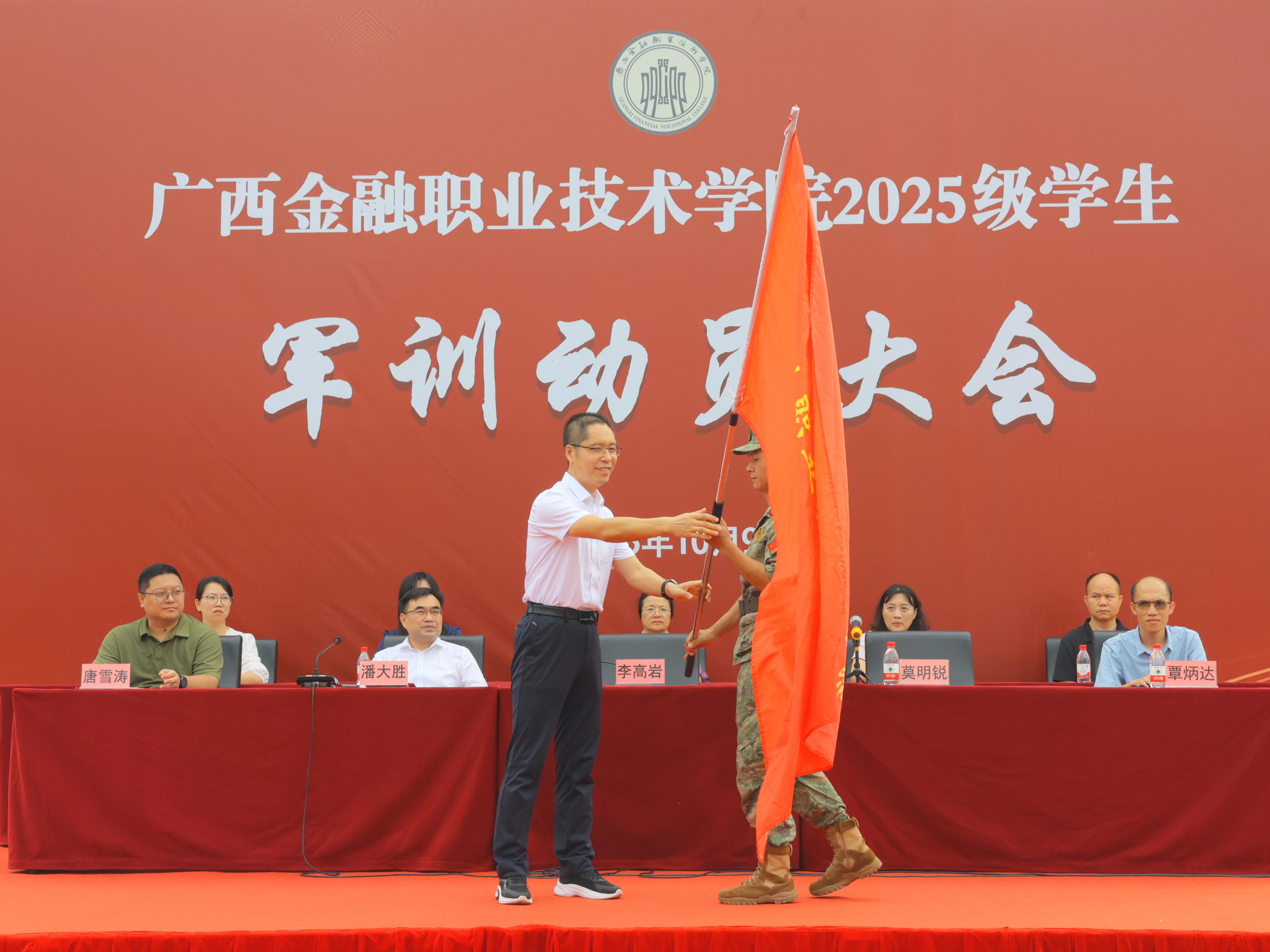 會上,李高巖書記和莫海燕校長向承訓(xùn)單位授軍訓(xùn)團(tuán)團(tuán)旗,鮮紅的旗幟高高飛揚,我校2025級學(xué)生軍訓(xùn)正式拉開帷幕。